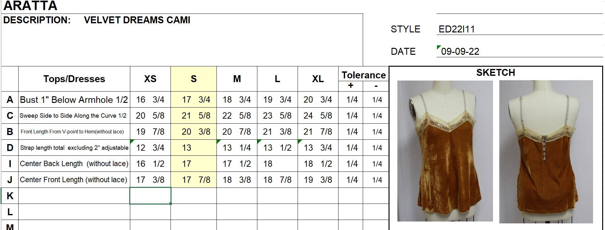 Aratta - Velvet Dreams Cami (Beaded Trim): M
