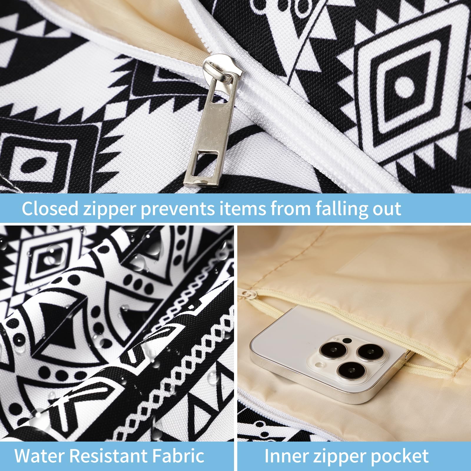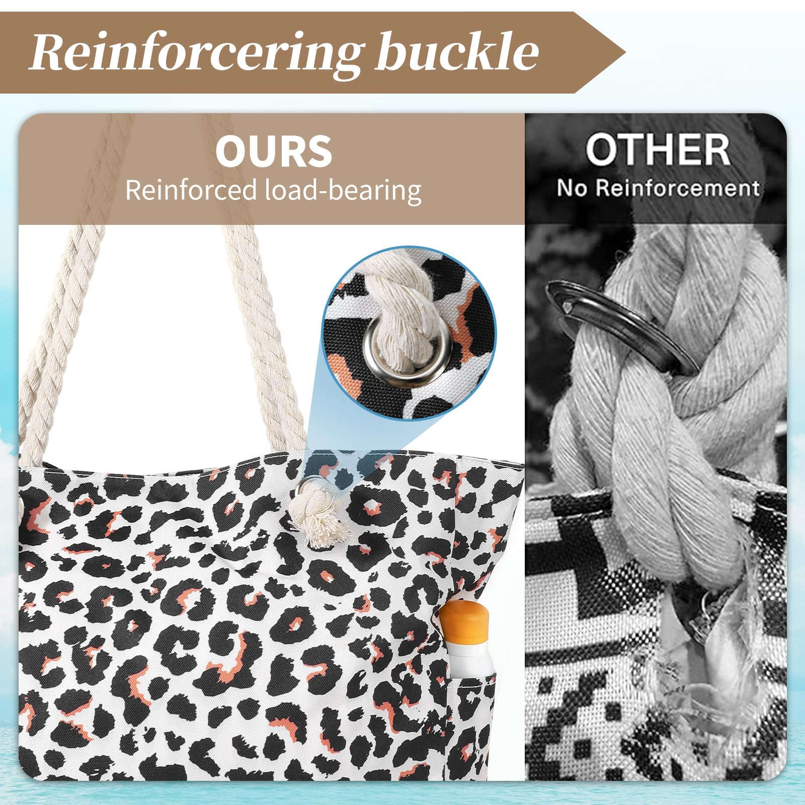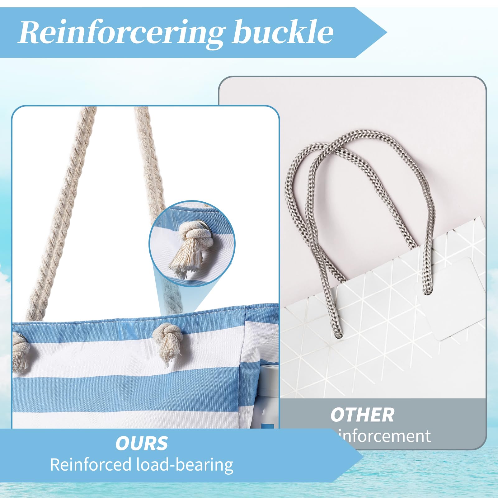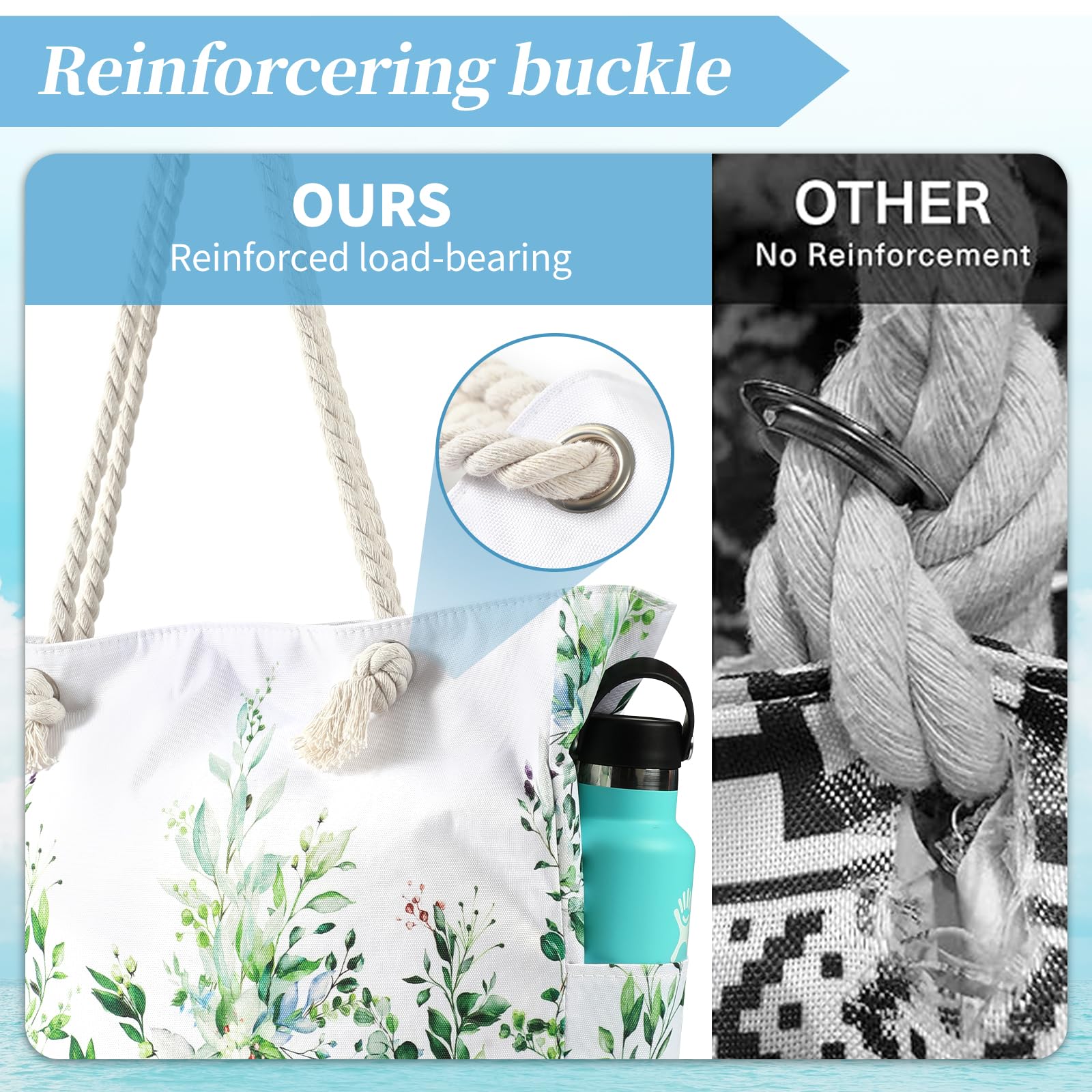 - Sturdy & comfy rope handles with knots sewn under the inner lining to avoid any zip hurdles, make the beach tote a great over the shoulder handbag for women. It is an indispensable item for vacation.