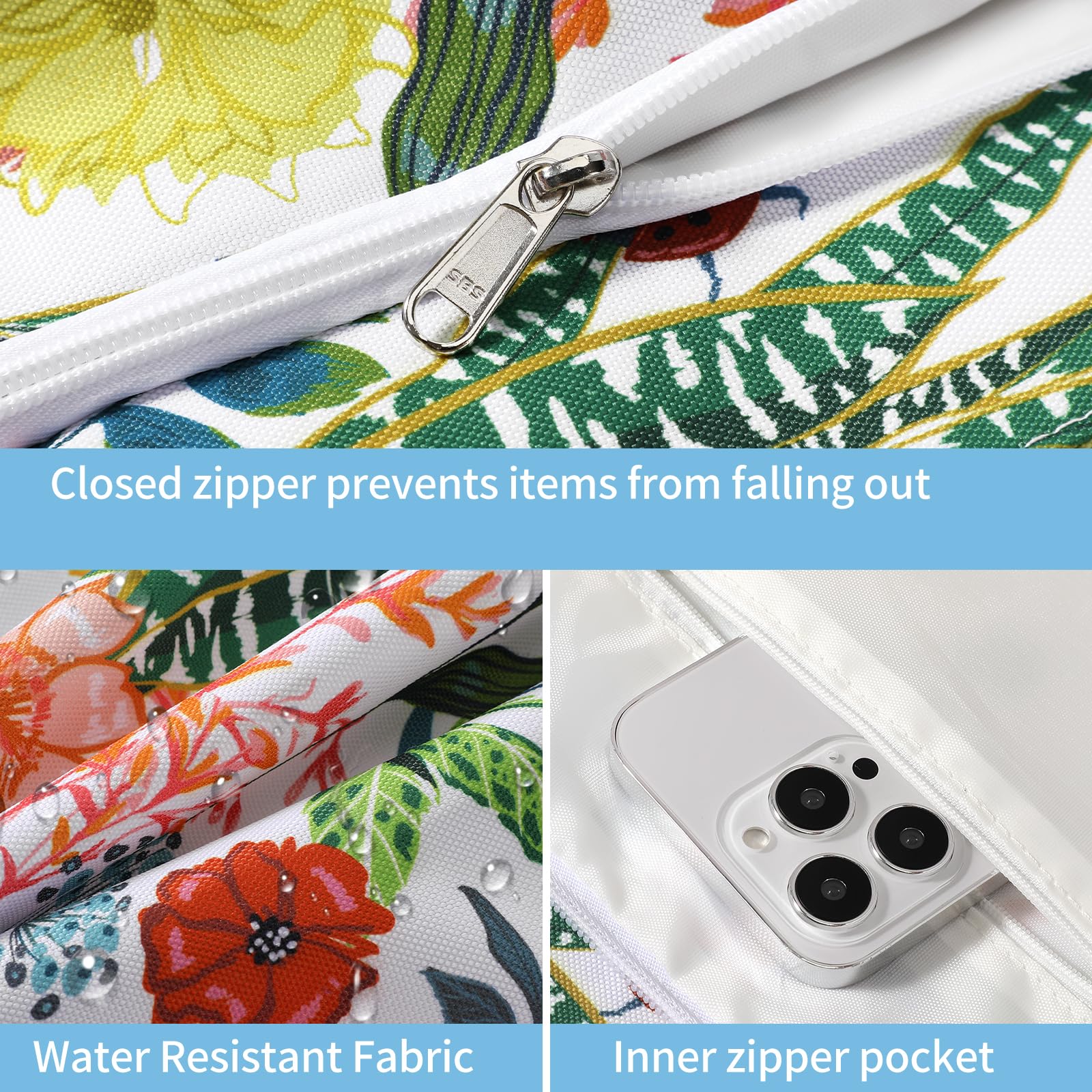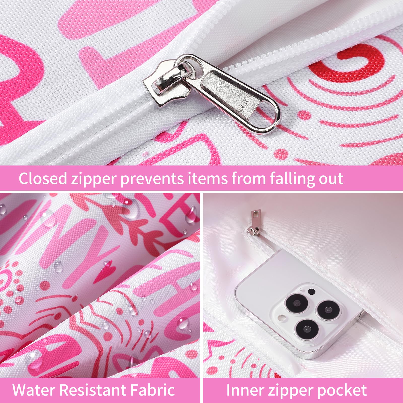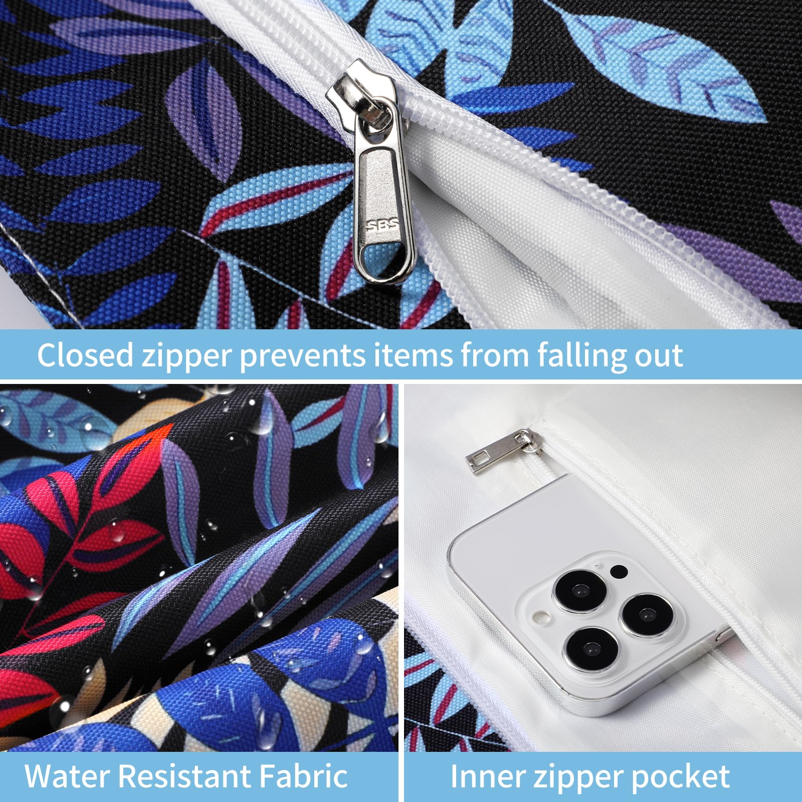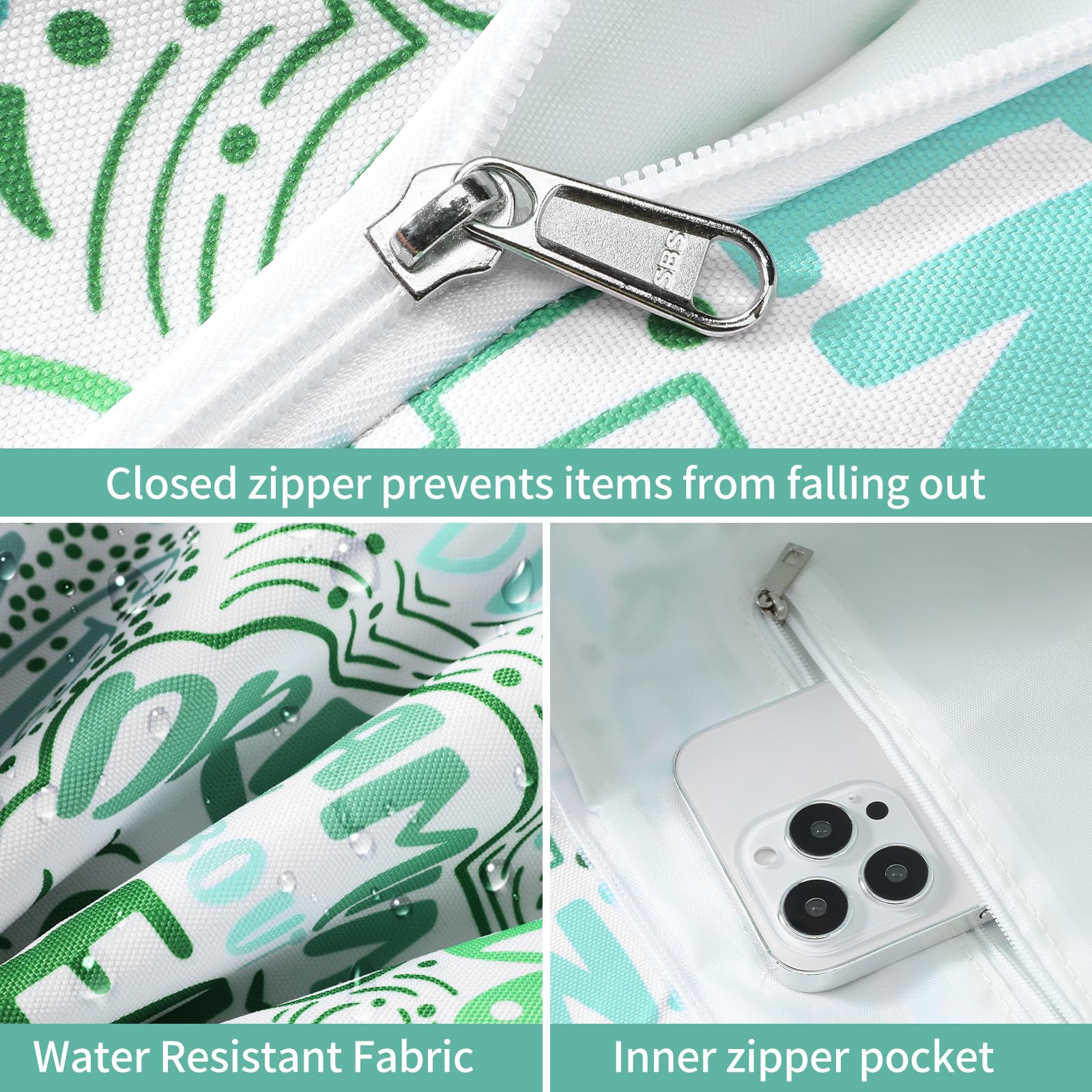 - The beach bag can securely store all your stuff, like lotions, lipstick, beach towel, beach hat, beach toys, coke, wallet, flip flops, sunglasses, sunscreen, swimsuit and other necessities.