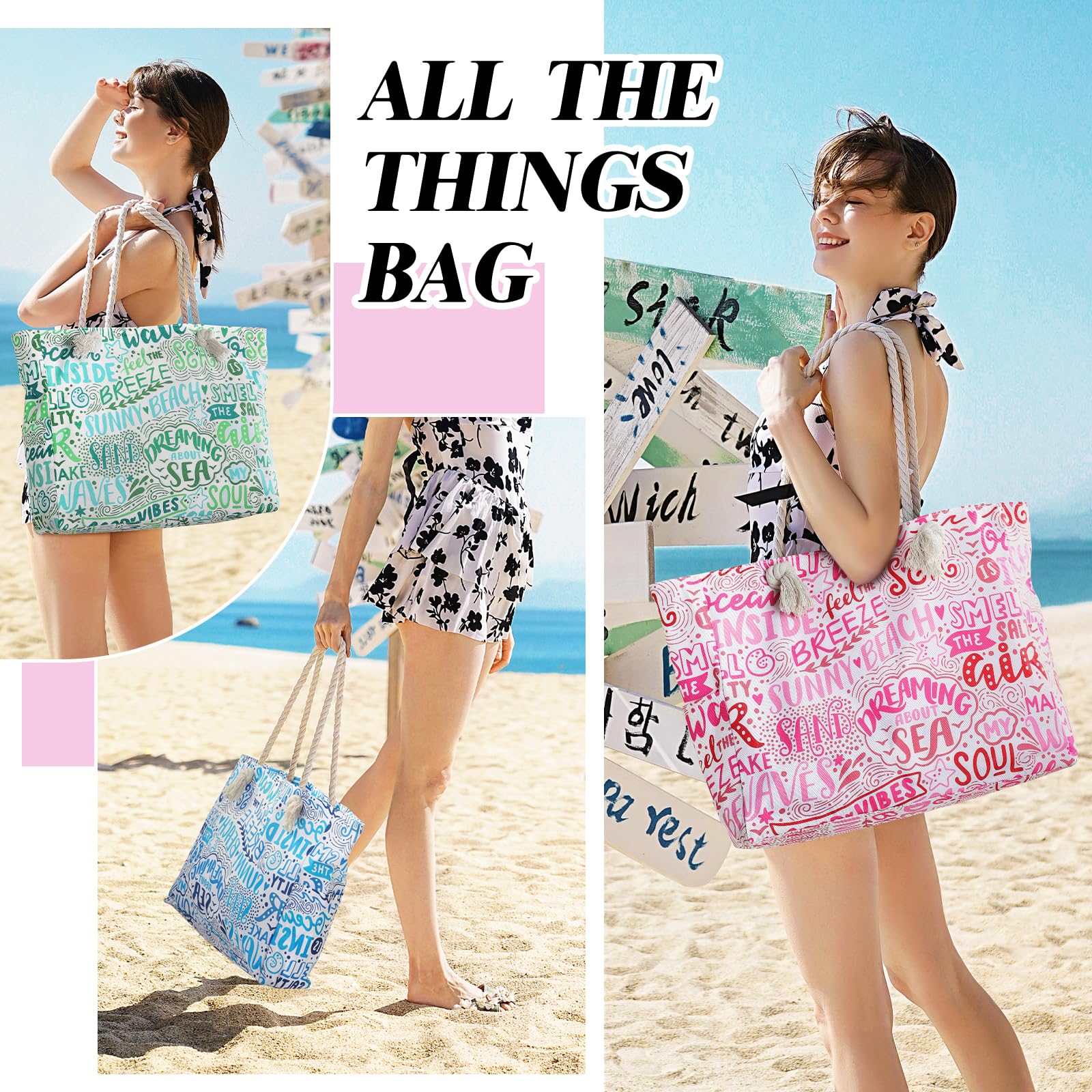 - Fashionable Pattern: Our beach tote bag has exquisite design, excellent workmanship, easy to carry, and impeccable style. Sturdy & comfy rope handles with knots sewn under the inner lining to avoid any zip hurdles, make the beach tote a great over the shoulder handbag for women. It is an indispensable item for vacation