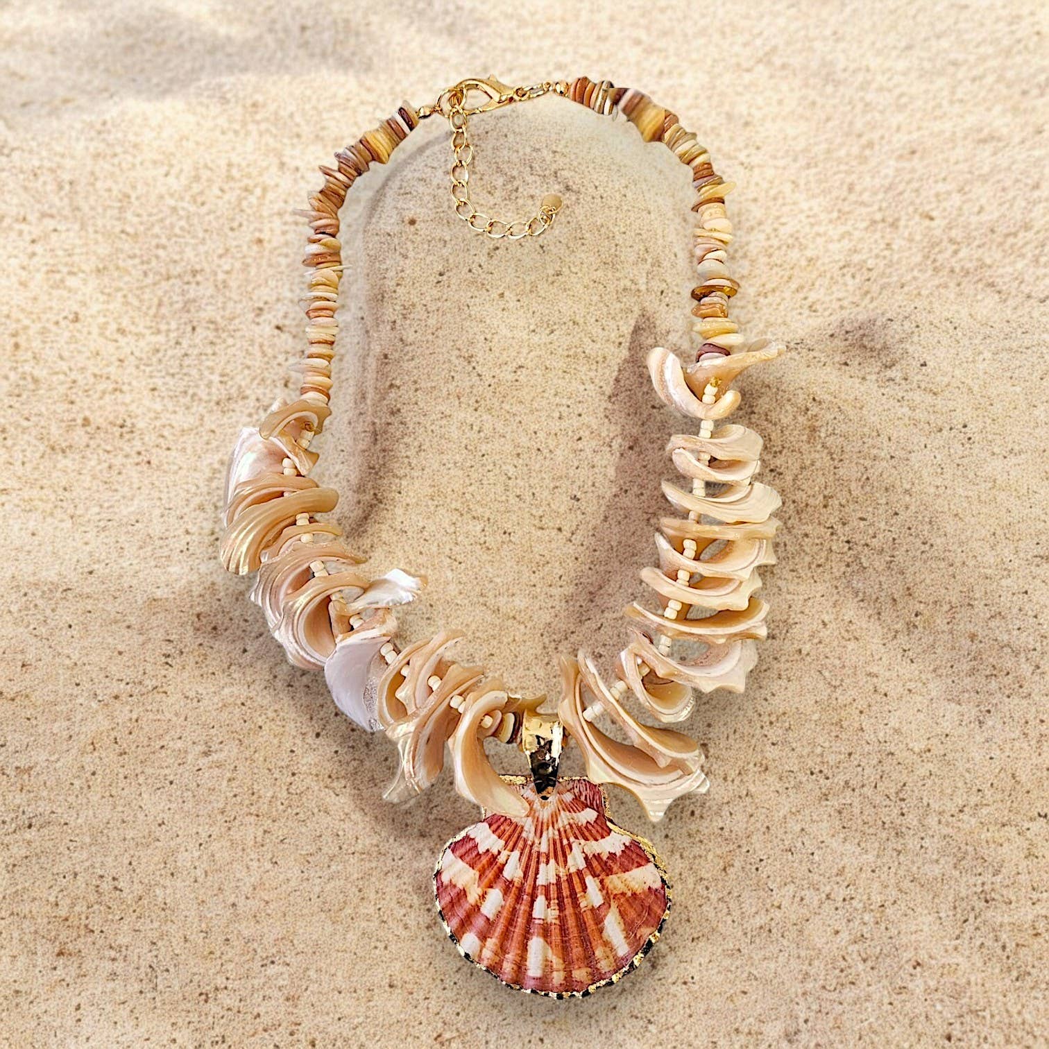 Bijoux Envie Statement Jewelry - Seashell Necklace | Summer Necklace | Beach | Boho | Mocha