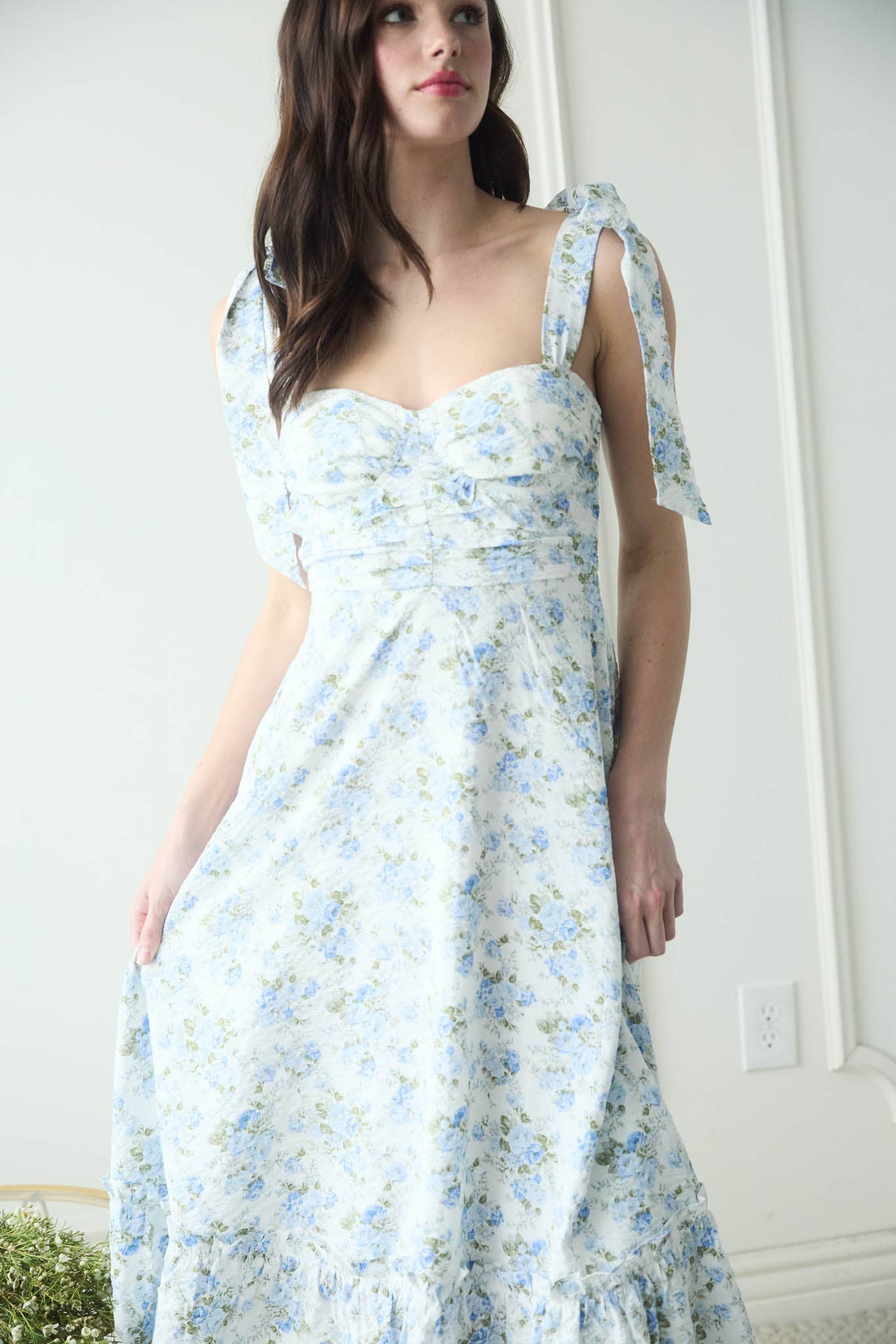 Blu Pepper - FLORAL TIE STRAP RUCHED DETAIL MAXI DRESS: PINK MULTI