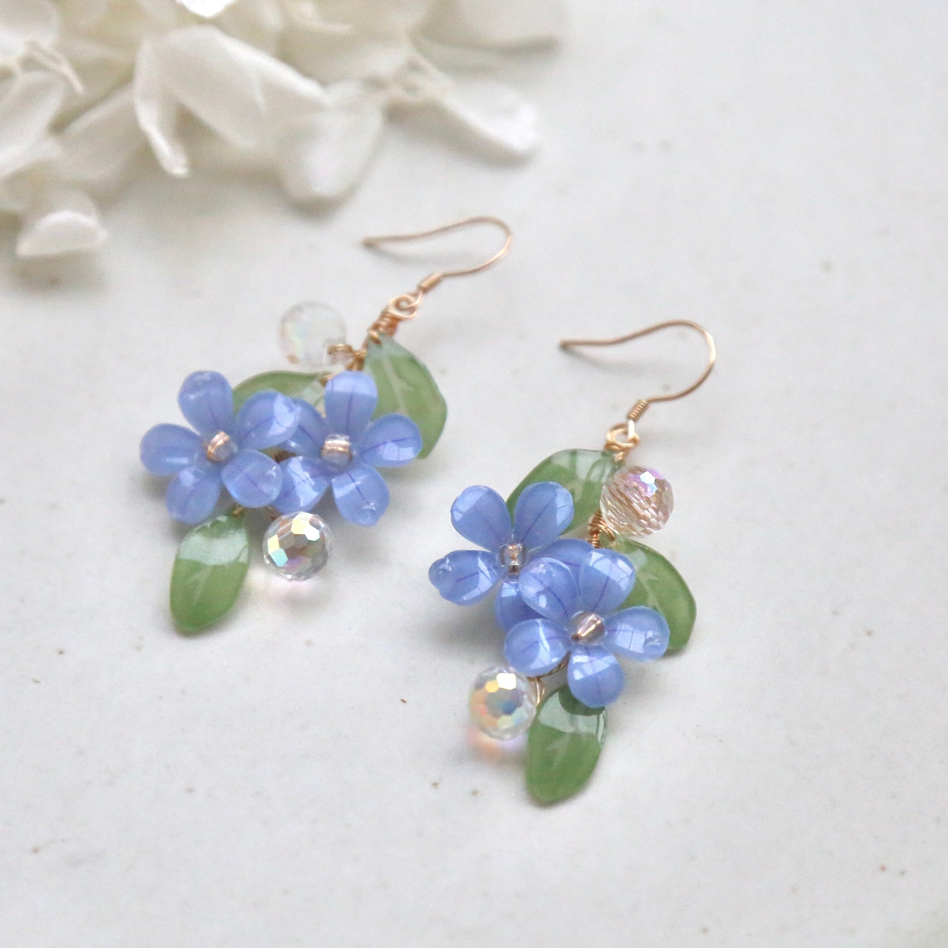 Handcrafted from heat-shrink material, these lightweight earrings feature a beautiful cluster of blue plumbago flowers. Perfect for adding a delicate floral touch to any outfit, they offer both style and comfort for everyday wear.