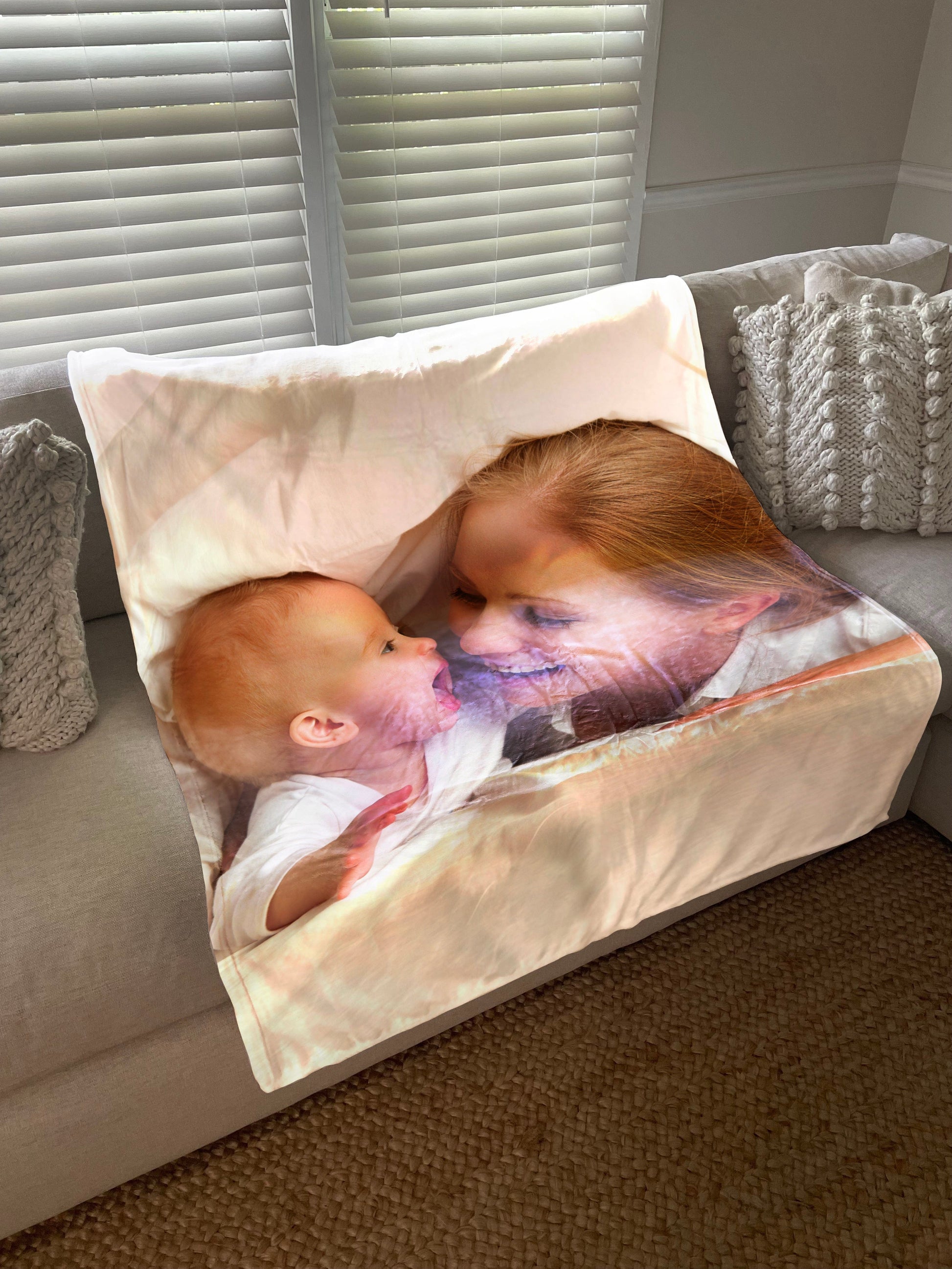 Our snugly photo blankets make a great personalized gift for your friends and family! The blanket is made of smooth cozy polar fleece or choose soft mink touch material (additional charge may apply). It measures 50" x 60" throw blanket size or 30" x  40" for a baby blanket size.  It perfect on a bed or love-seat. Create collage of your favorite photos to personalize this blanket and make it memorable gift for life!