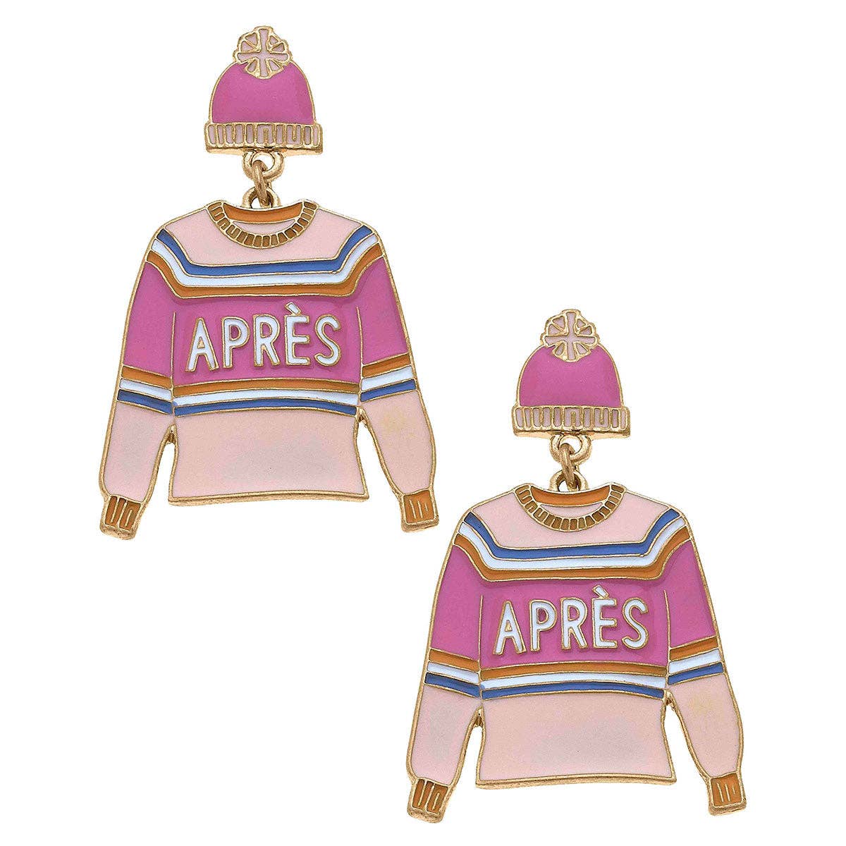 Canvas Style - Après Ski Sweater Enamel Earrings in Pink