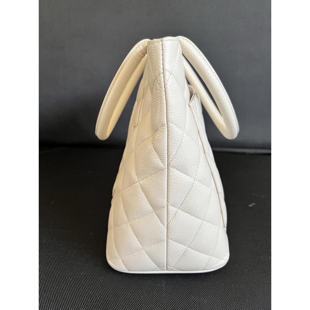 Elevate your style with the timeless elegance of the CHANEL Medallion Shoulder Bag, a masterpiece of sophistication crafted from premium white leather. The bag boasts an elegant ivory exterior, complemented by a camellia pattern that exudes the iconic CHANEL charm. Its spacious interior is lined with a matching ivory leather, ensuring your essentials are cradled in luxury.