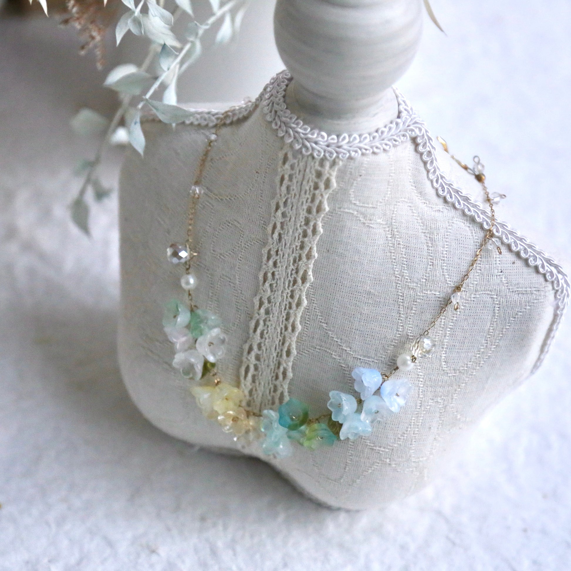 It features 20 different colors of glazed lily flowers, crystals and pearls, all arranged in a stunning gradient color scheme. The material is high quality stainless steel, so you can be sure that it won't fade or cause allergies. And to top it off, the necklace has a special gold floral clasp.