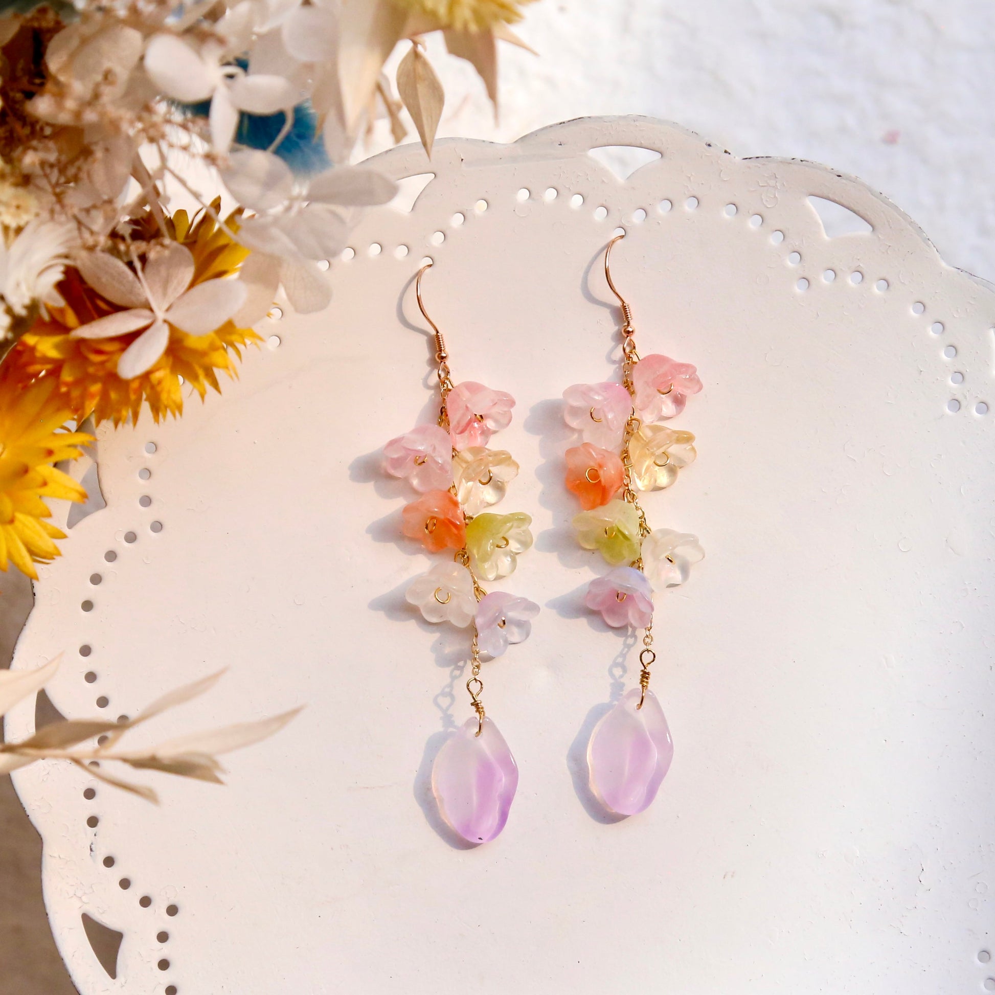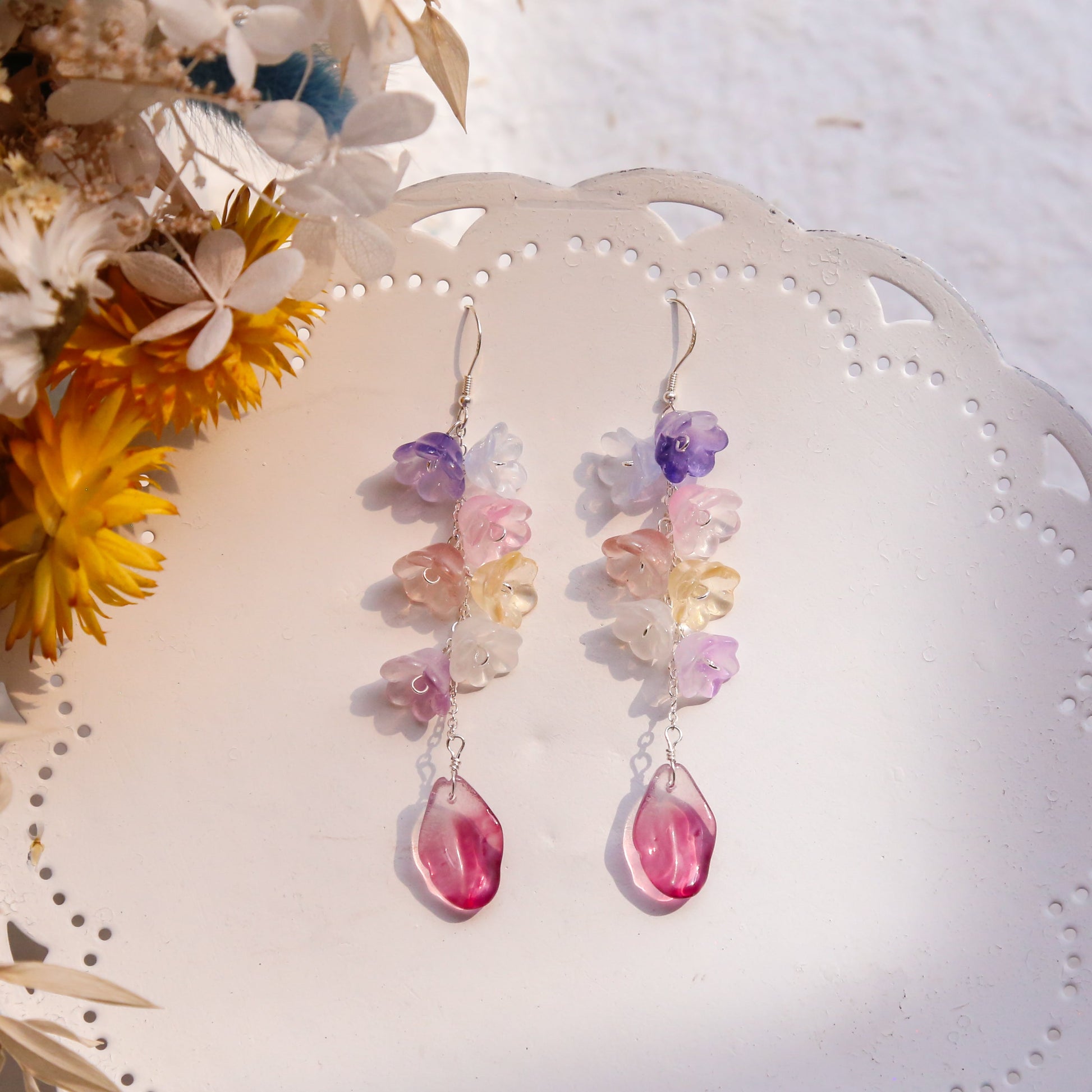 These colorful flower earrings feature seven glazed lilies and one glazed petal. Available in GOLD and SILVER finish!