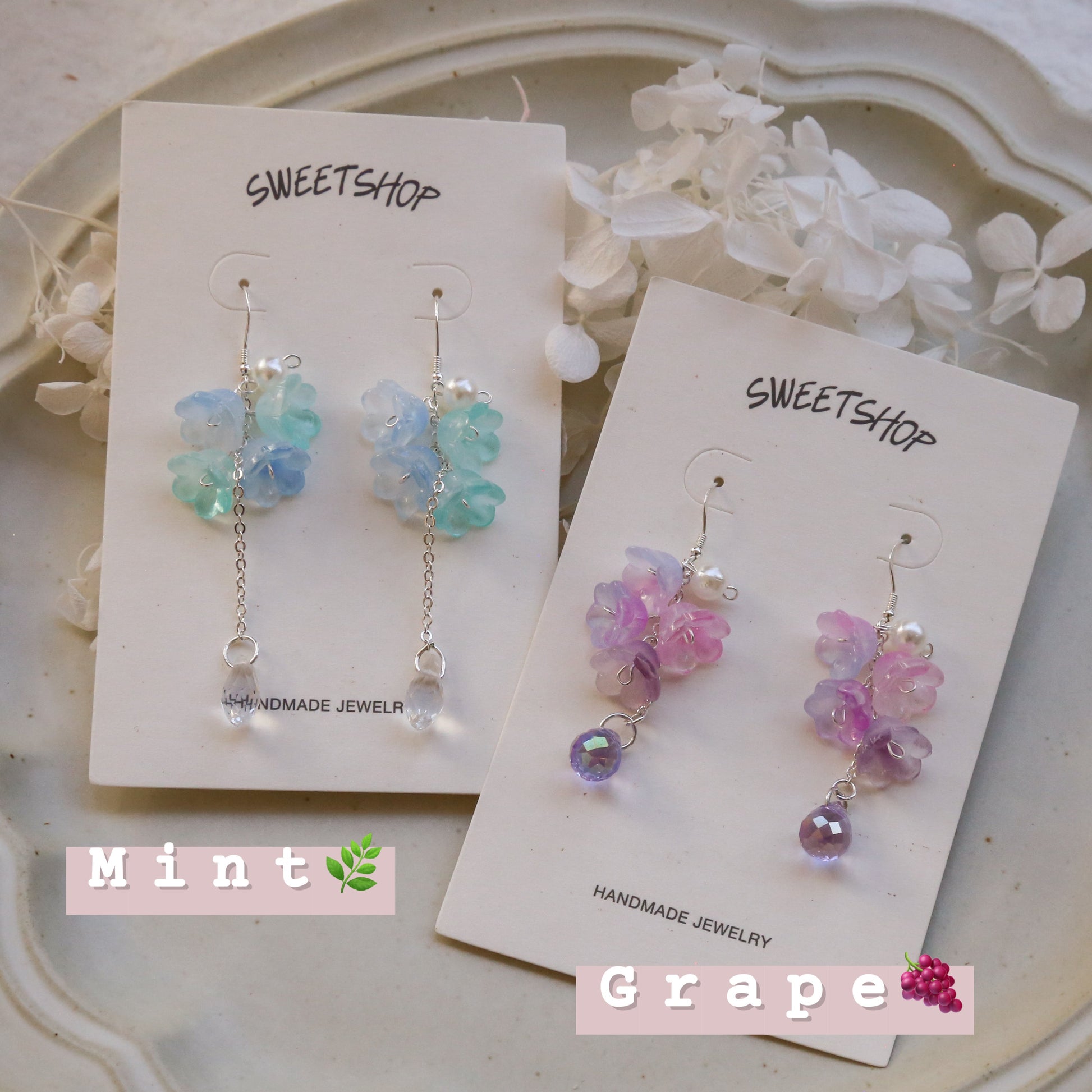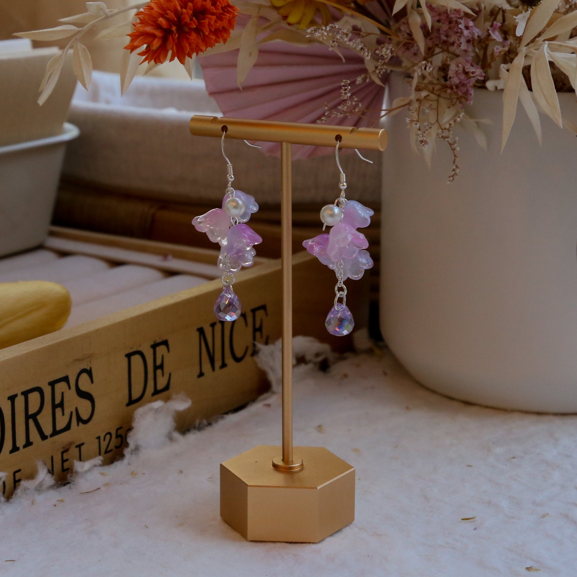 These colorful lily flower earrings feature 4 glazed lilies and shinny crystals. They are really lightweight and comfortable for everyday wear.