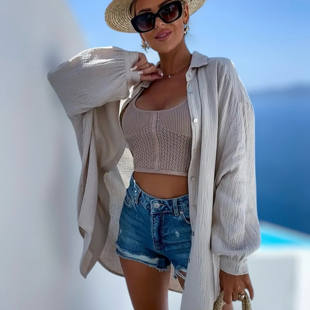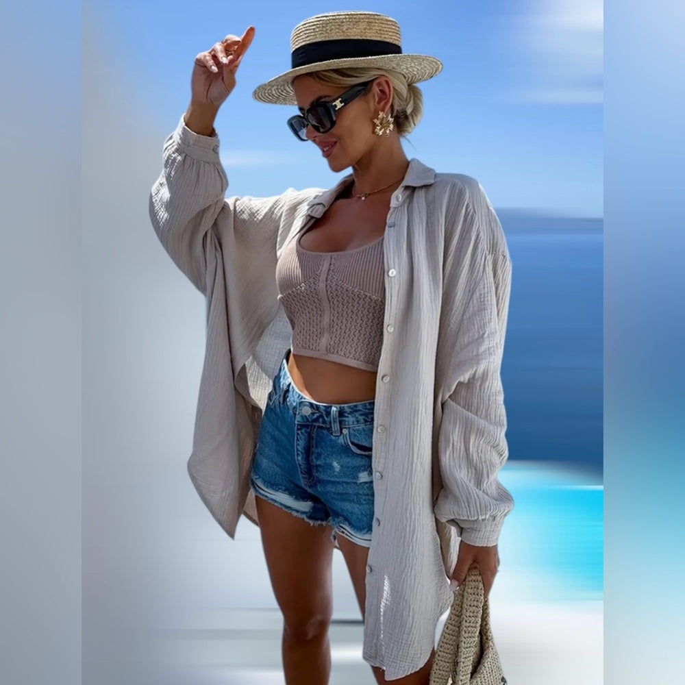Spring And Summer Women'S Casual V-Neck Sports Shirt Beach Cardigan Sequins Loose Long Sleeve Women