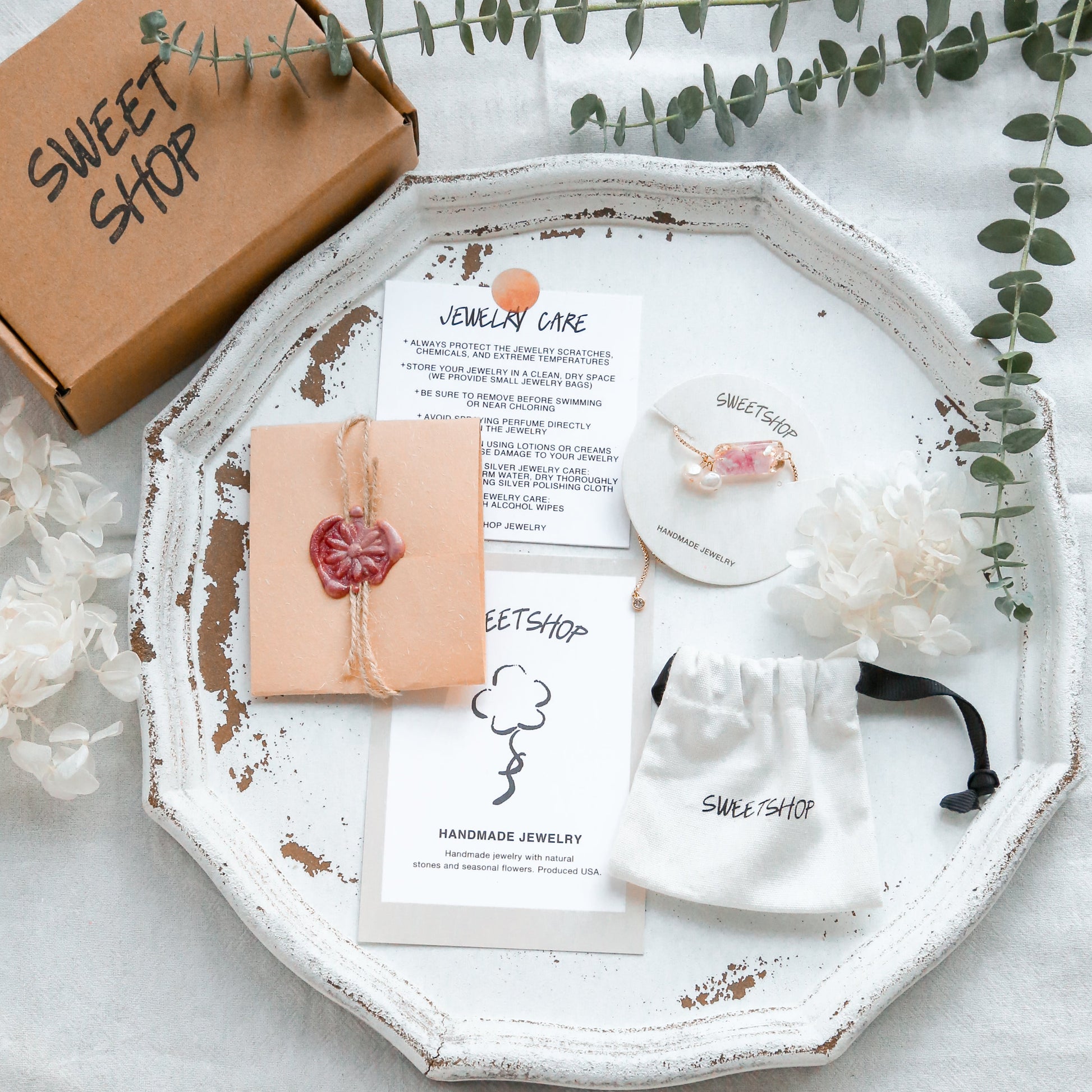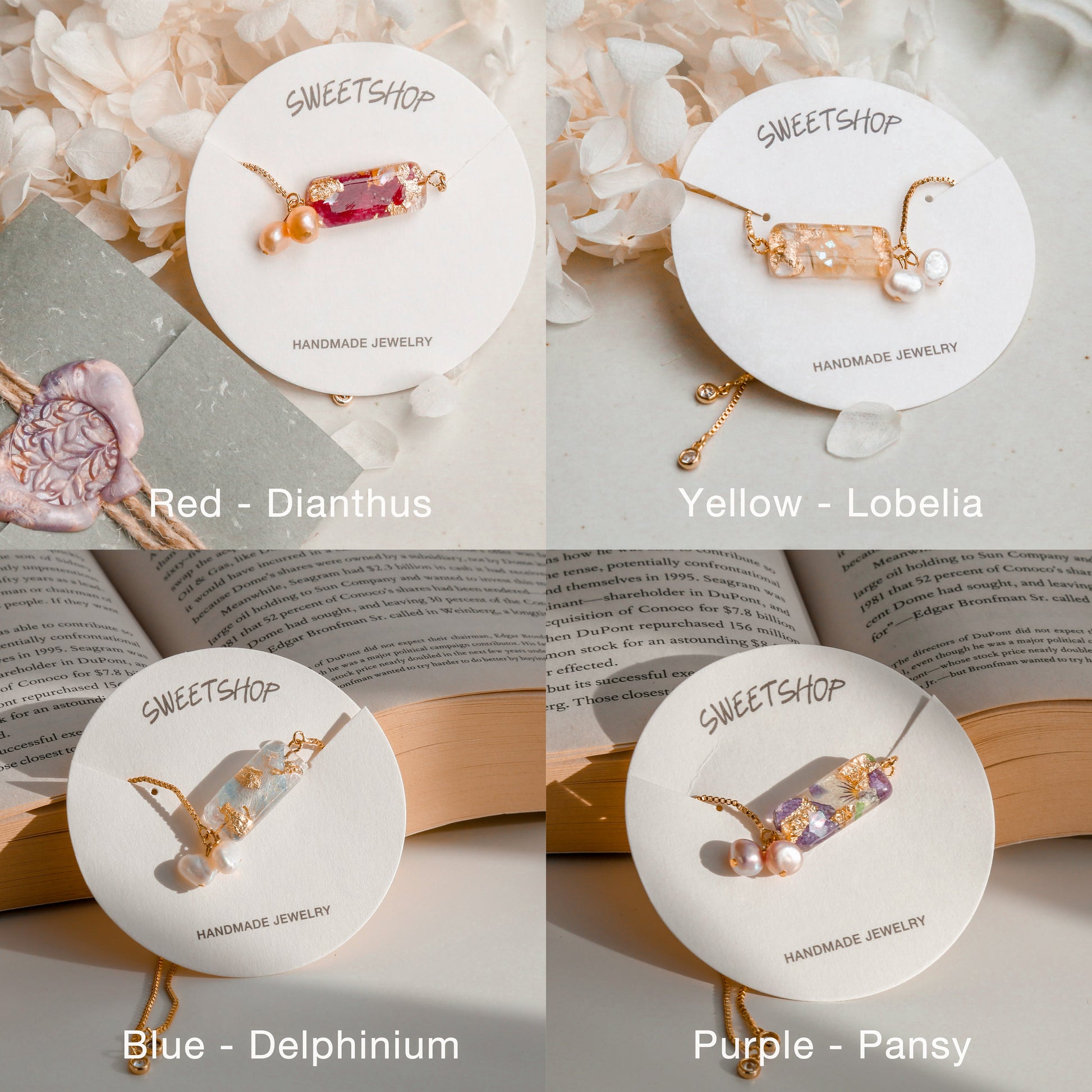 PERSONALIZED HANDMADE JEWELRY WITH SEASONAL FLOWERS.