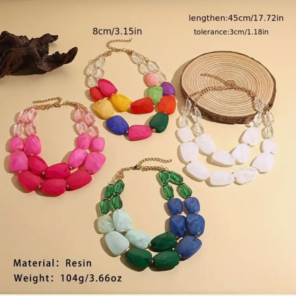 This stunning necklace features vibrant green and blue beads, perfect for adding a pop of color to any outfit. The elegant design is ideal for both casual and formal occasions.