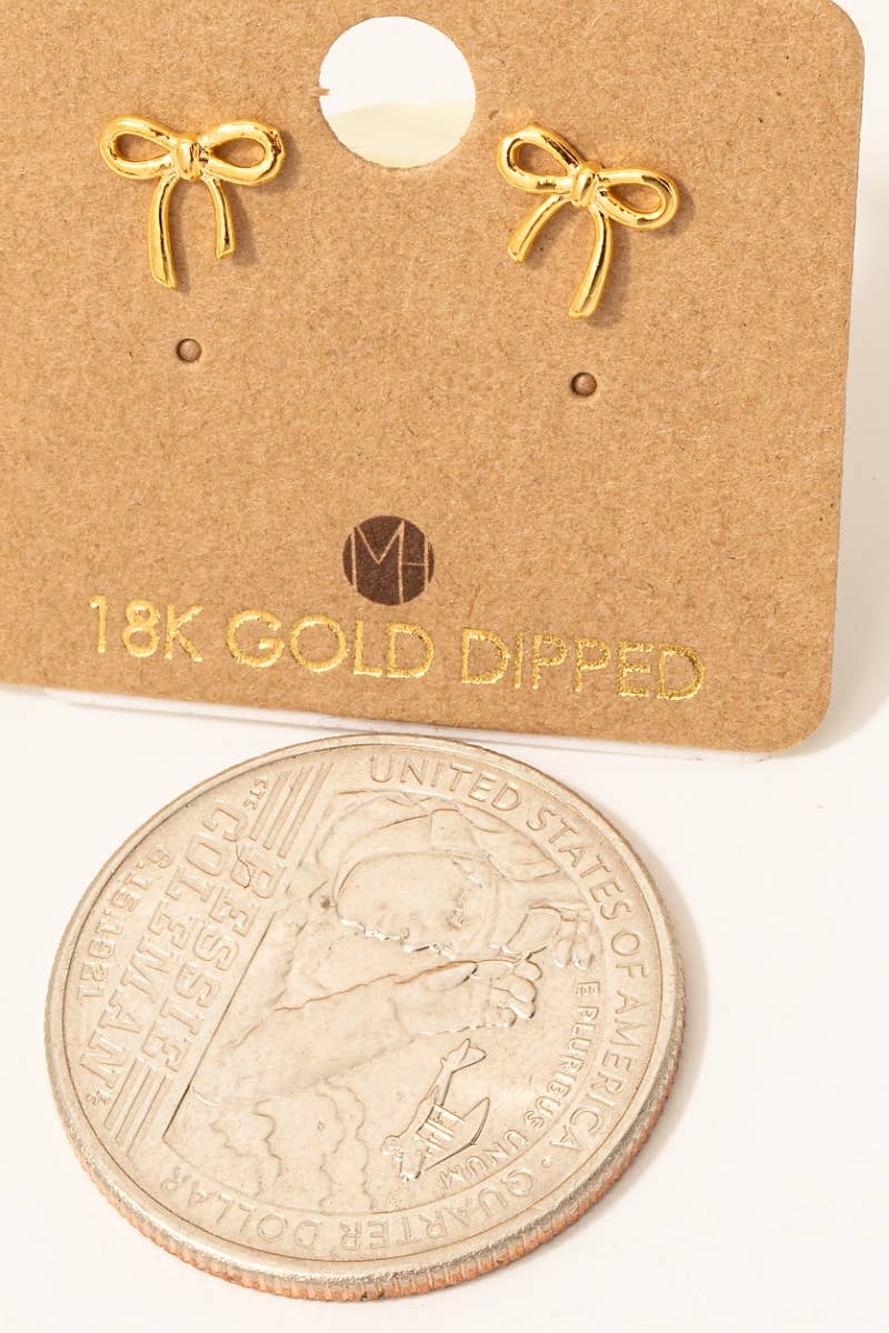 Fame Accessories - Gold Dipped Mini Ribbon Bow Stud Earrings: G