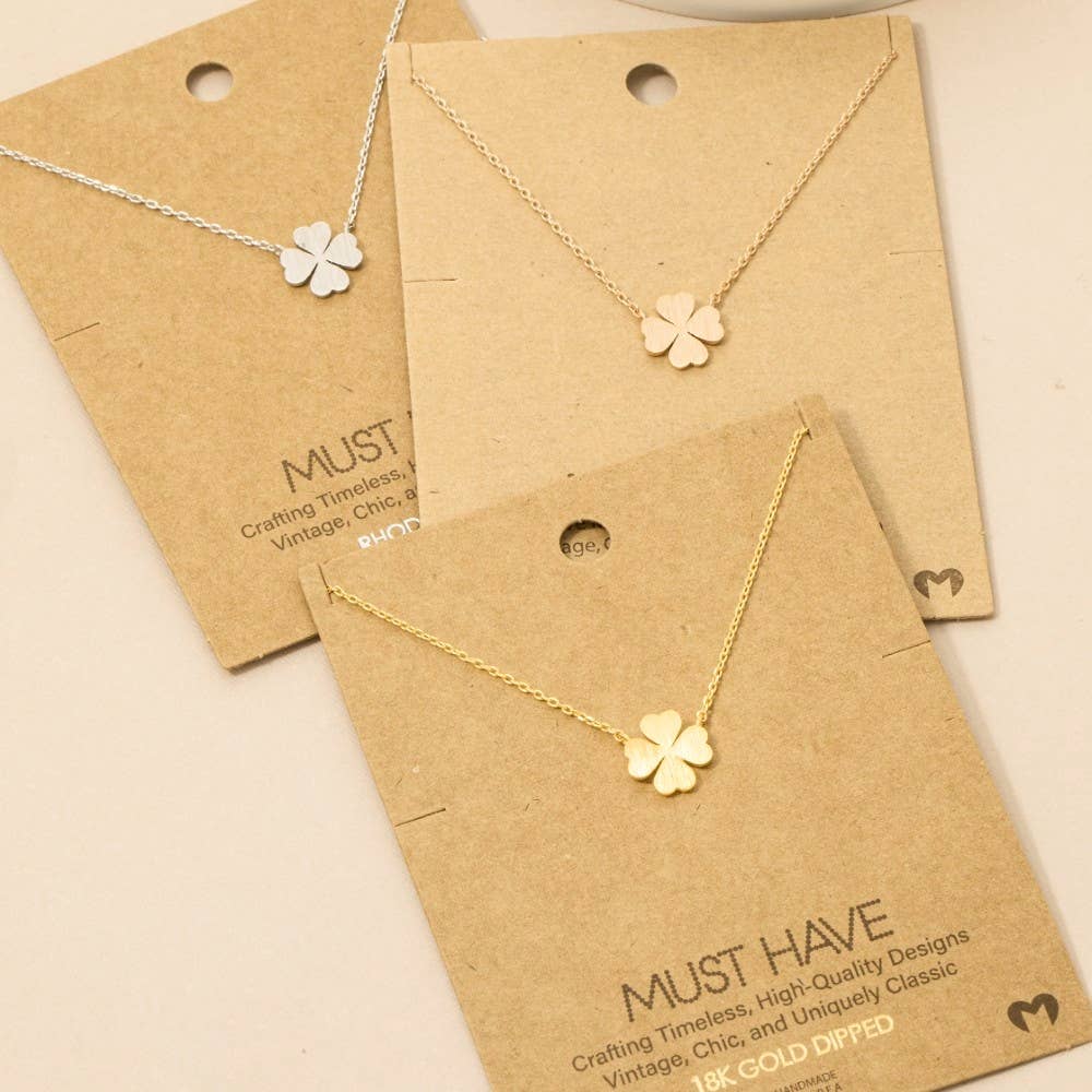 This trending necklace displays a fashionable mini clover pendant necklace style. Indulge in the artistry of accessorizing with this unique piece.