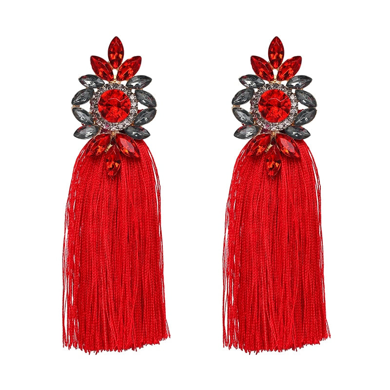 Glamour Rhinestone Hot Pink Tassel Women's Earrings