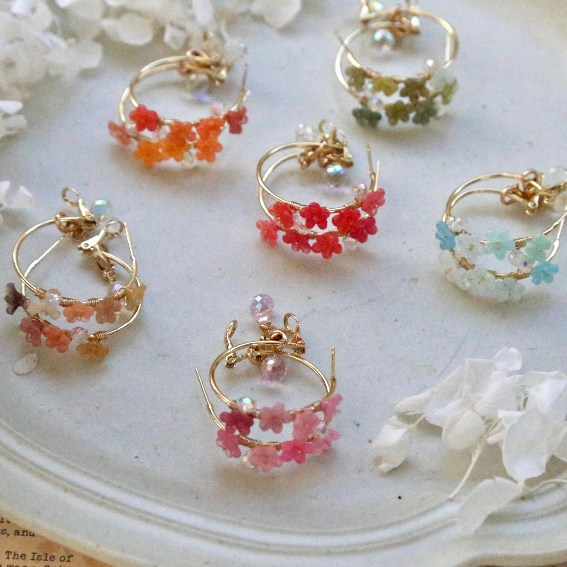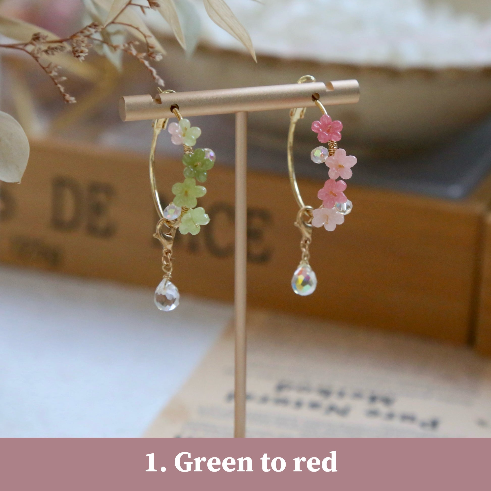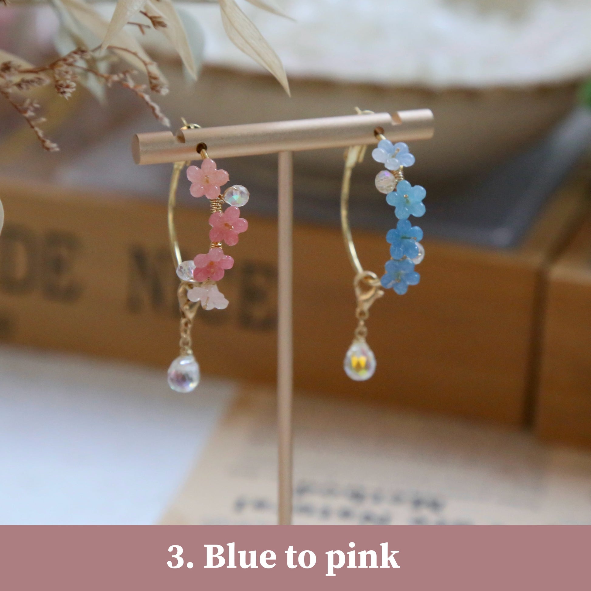These gradient flower hoop earrings feature handcrafted shrink plastic flowers with a dreamy gradient design—each hoop showcases a slightly different gradient for a playful, asymmetrical look. Paired with detachable crystal pendants, they’re versatile, lightweight, and absolutely adorable!