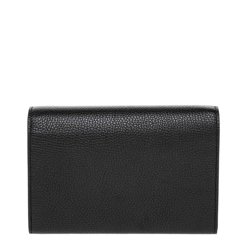 Price as marked. About the brand: Eclectic and coveted. Italian luxury redefined.. Made in Italy. Color/material: black leather. Design details: Gold-tone hardware; Grained leather, GG hardware. Interior design details: Two compartments, card slots, slip pocket, bill slot, center zip pocket. Measures 8in wide x 5.3in high x 1.4in deep. Removable shoulder strap drops 23.5in. Snap closure. Please note: All measurements were taken by hand and are approximate; slight variations may occur..