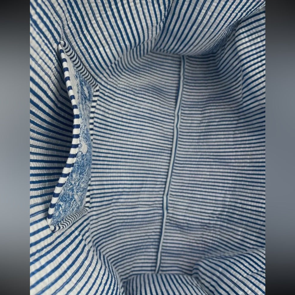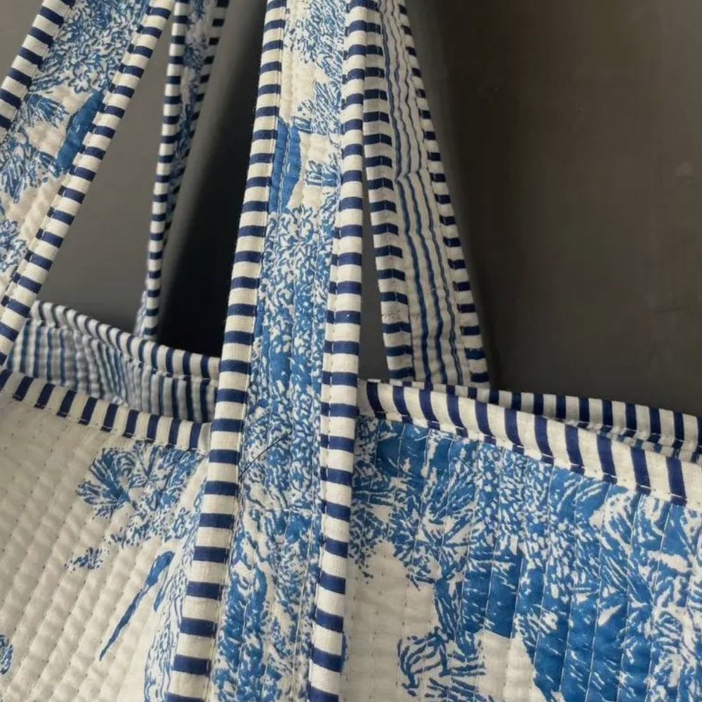 Stylish and spacious blue and white tote bag, perfect for everyday use. Features a beautiful pattern that adds a touch of elegance to any outfit.