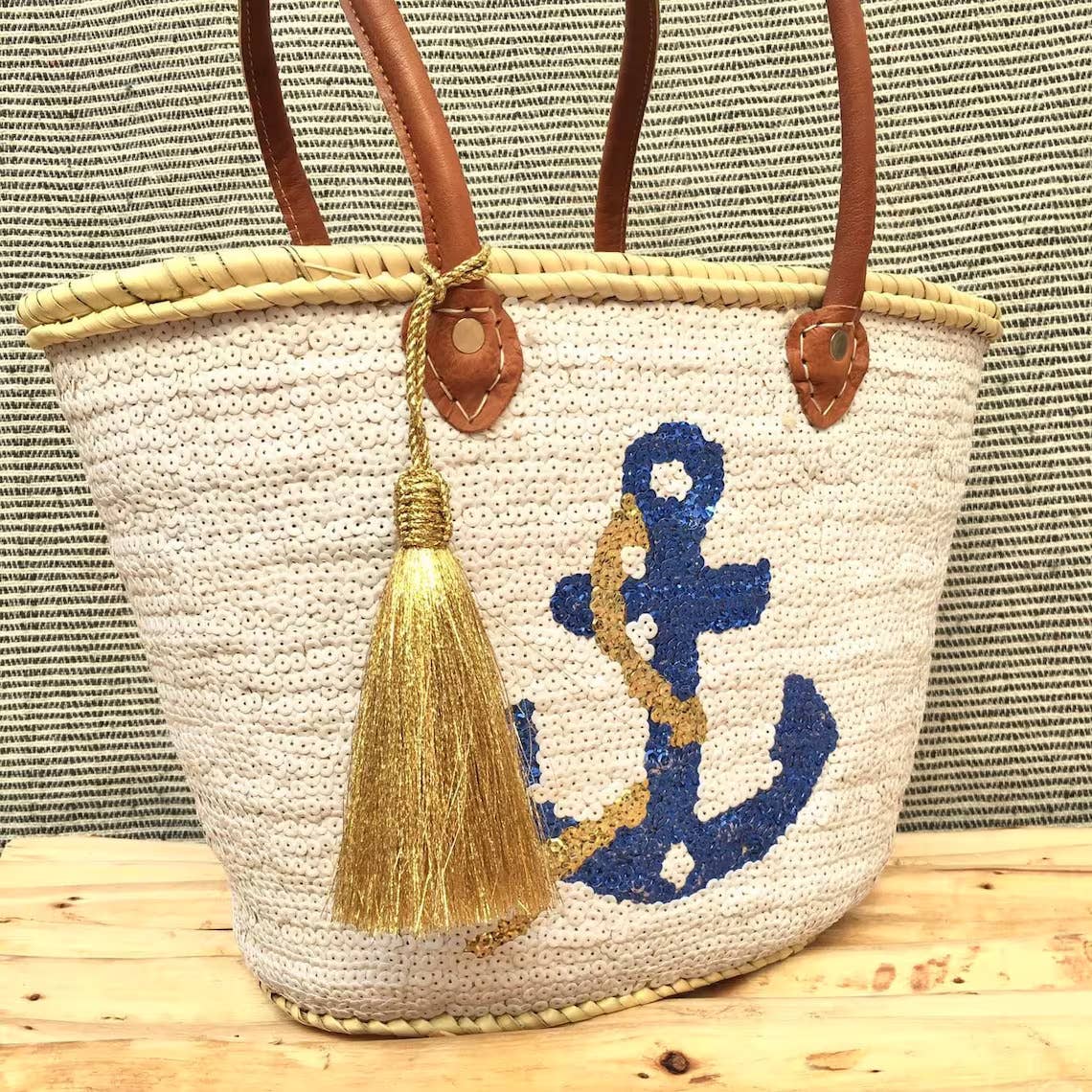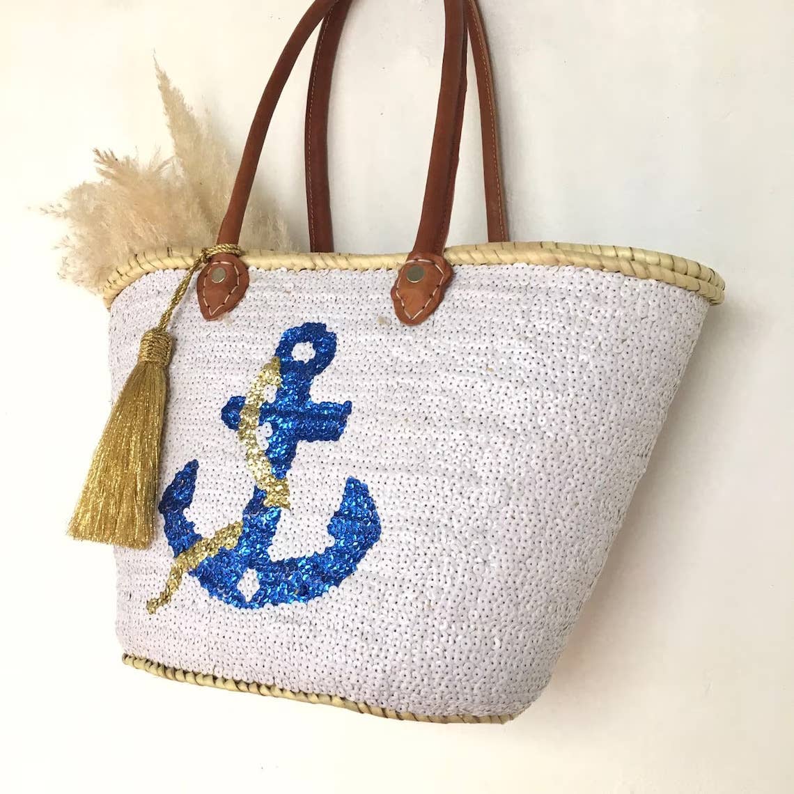 HandmadeBestSeller - Shopping Basket | Moroccan Basket Bag | Sewn Sequins