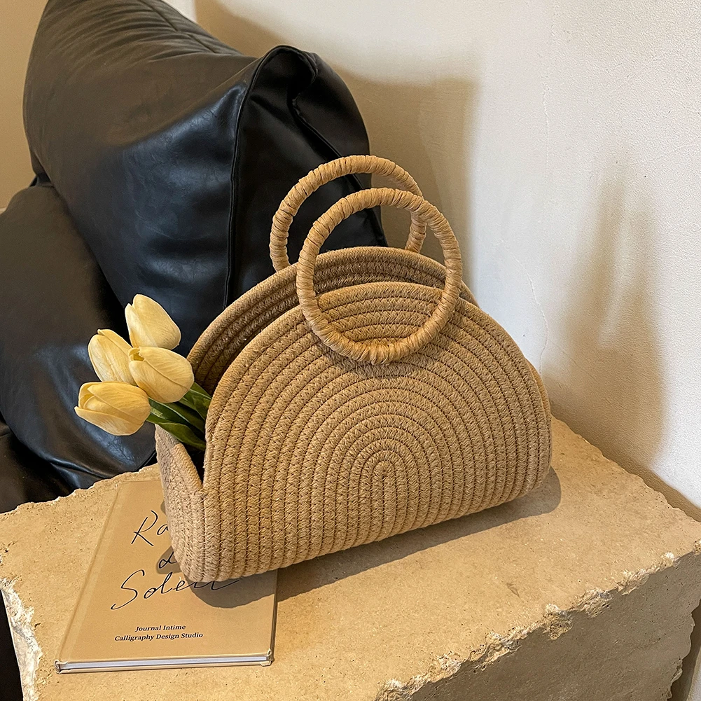 Handwoven Top Handle Bag Chic Shoulder Purse Retro Holiday Travel Handbag Vacation Bag for Women and Girls