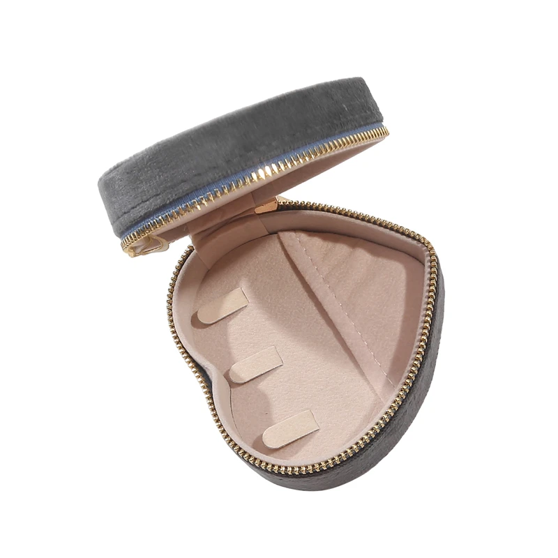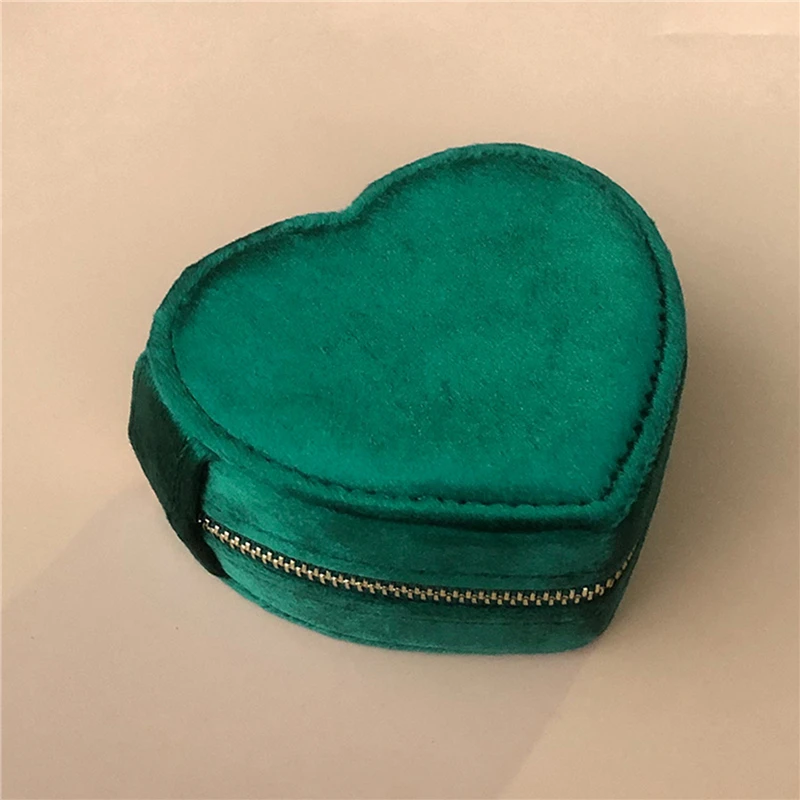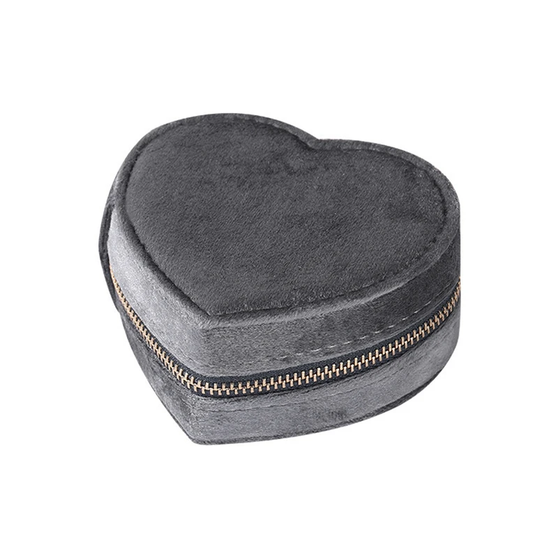 Heart Shape Jewelry Boxes Velvet Jewelry Case For Earrings Necklace Zippered Jewelry Boxes Household Clothing Accessory