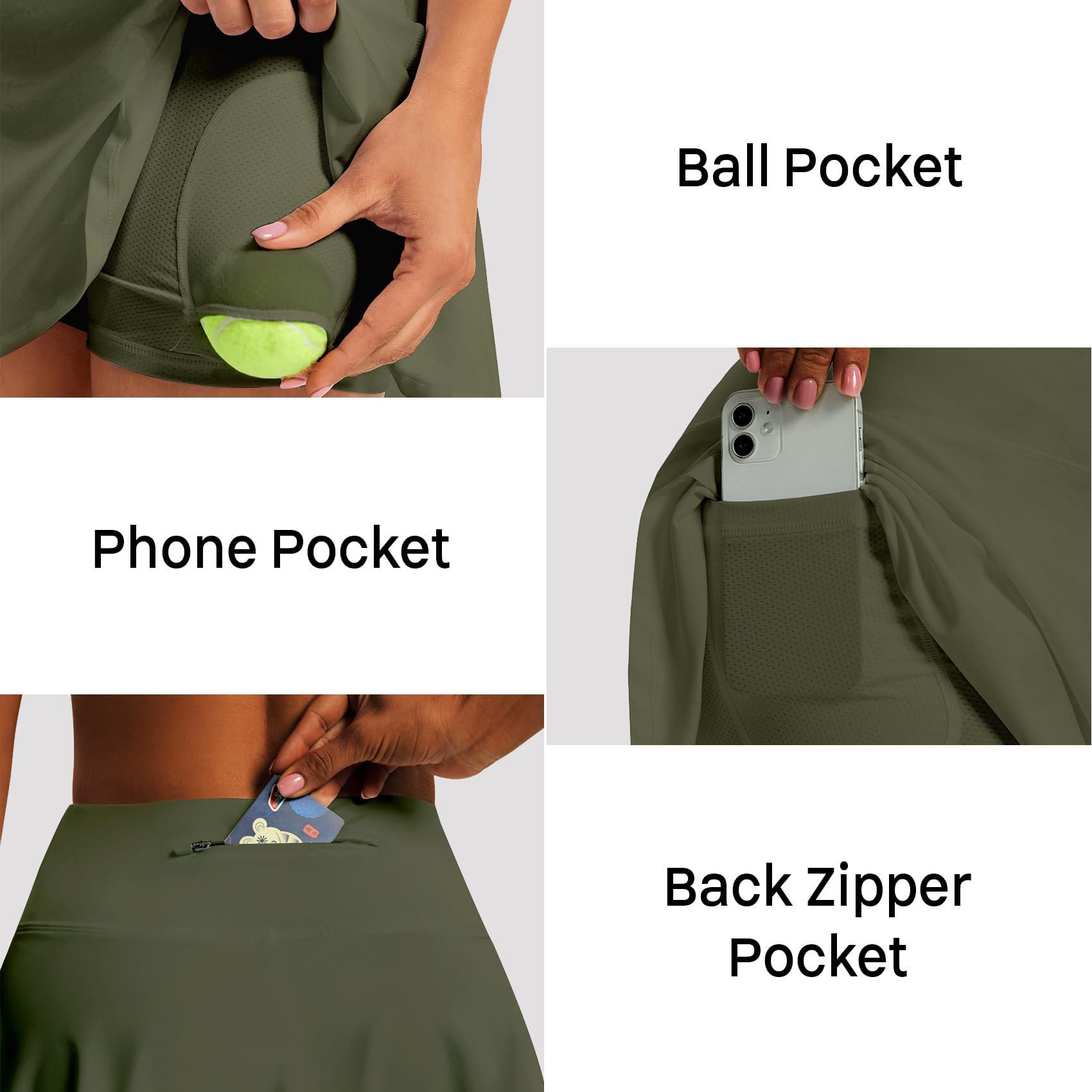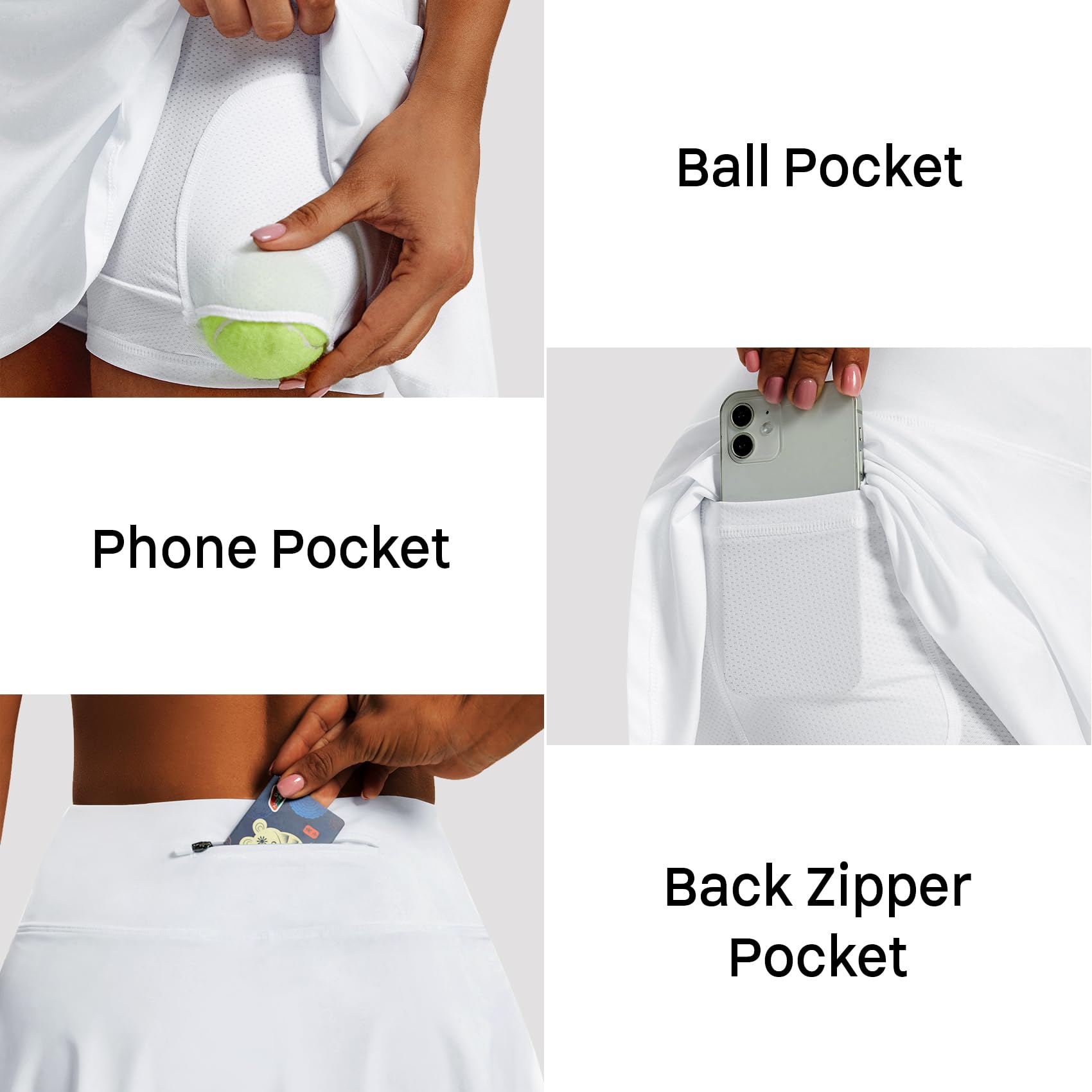 - 4 Pockets: Equipped with one deep right pocket for your phone, one special upside-down left pocket for tennis ball, and a secure back zipper pocket plus a hidden waistband pocket for cards or keys.