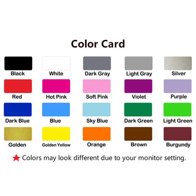 1 Black. 2 gray. 3 white. 4 navy blue. 5. blue. 6 blue. 7 Sky Blue. 8 light green. 9 violets. 10. Light purple. 11 brown. 12 burgundy. 13 hot pink.14 soft pink. 15 red. 16 orange. 17 beige. 18 golden yellow