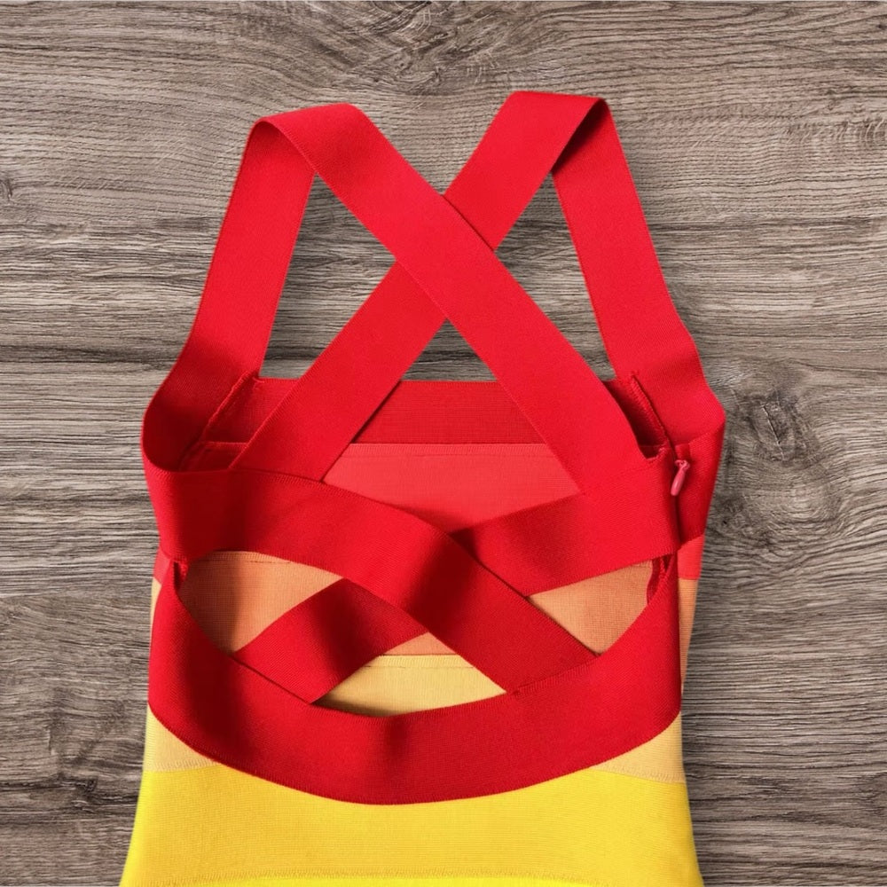 Vibrant and stylish, this multicolor striped bodycon dress is perfect for making a statement. Featuring bold stripes in red, orange, yellow, green, blue, and purple, this dress is a must-have for any fashion-forward wardrobe.