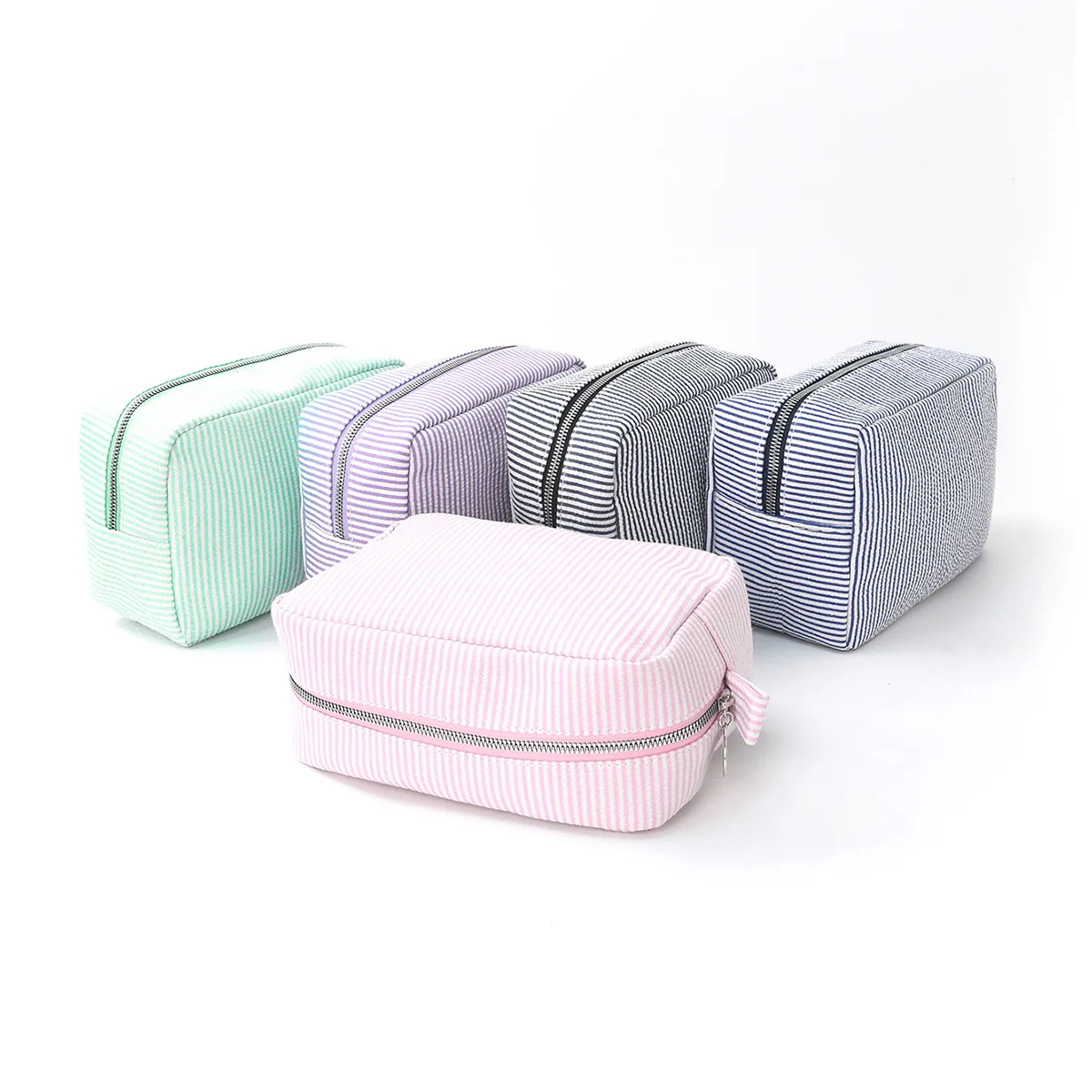 New Seersucker Cosmetic Bag, Personalized Monogrammed Toiletry Bag, Embroidered Make Up Bag,Bridesmaid Makeup Bag, Wedding Gifts
