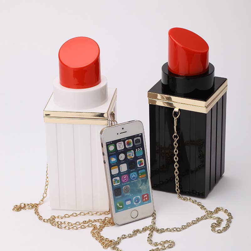 Ole - Acrylic Lipstick Evening Bags : Black-Pink