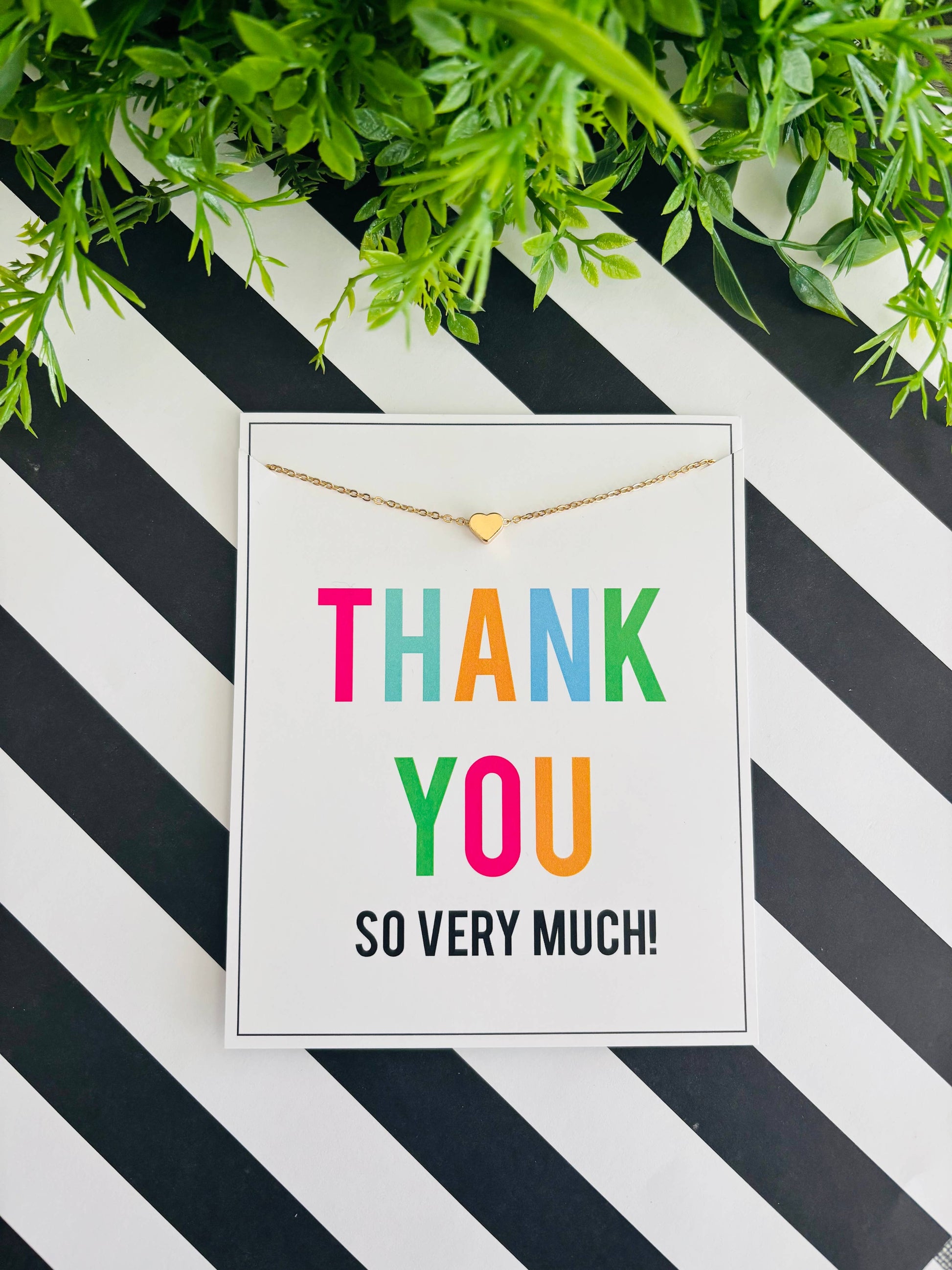 Whether you need to thank that special friend, valuable teacher or that someone incredible...this thank you heart necklace/stationery combo gift is the perfect way to do so!