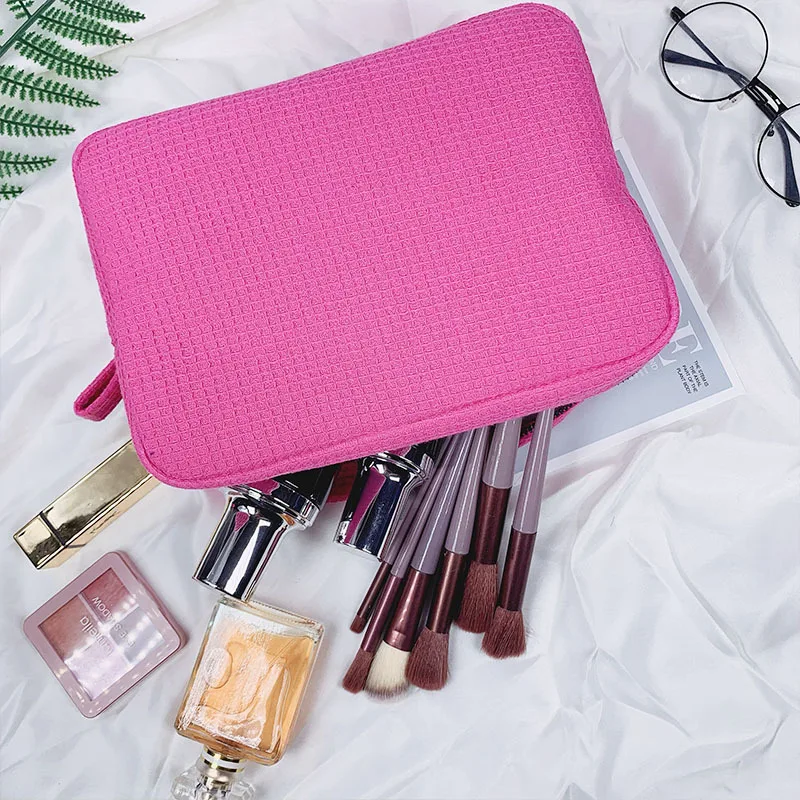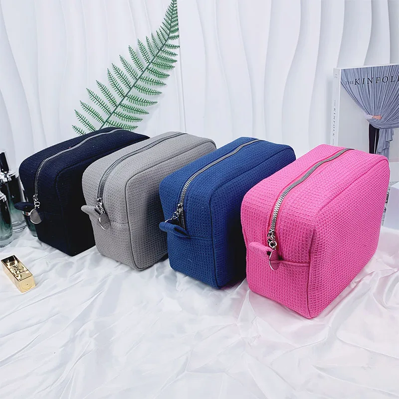 Personalized Makeup Bag -Travel Cosmetic Bag -Custom Waffle Weave Bag- Bridesmaid Gift - Monogram Toiletry Bag - Makeup Bag Set