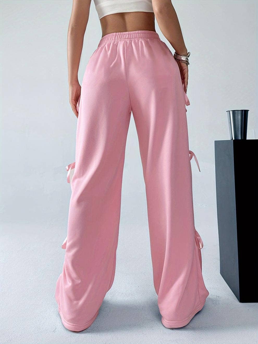 Rosa Clothing - Straight leg sweatpants with bow: White / M