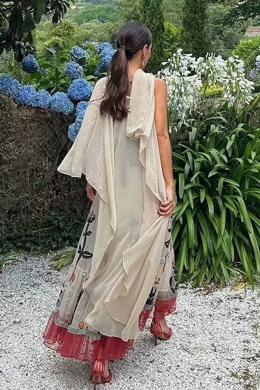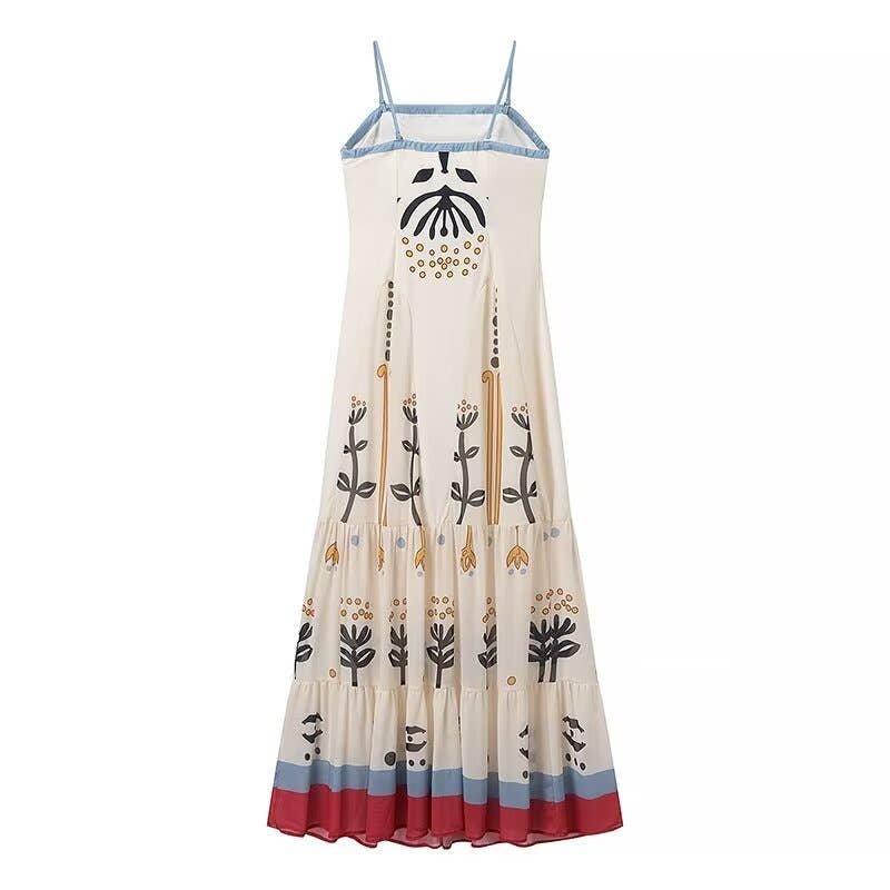 Rosa Clothing - Strappy Tulle midi dress with multicolor flowers print: Beige-R / M