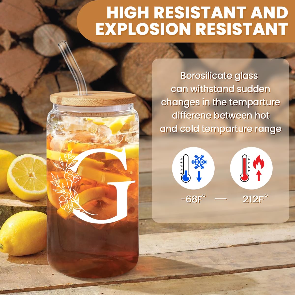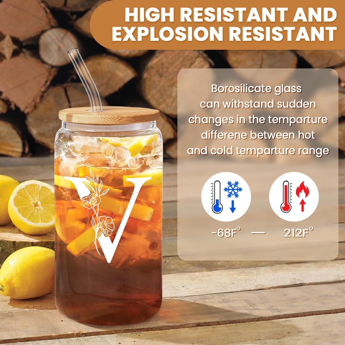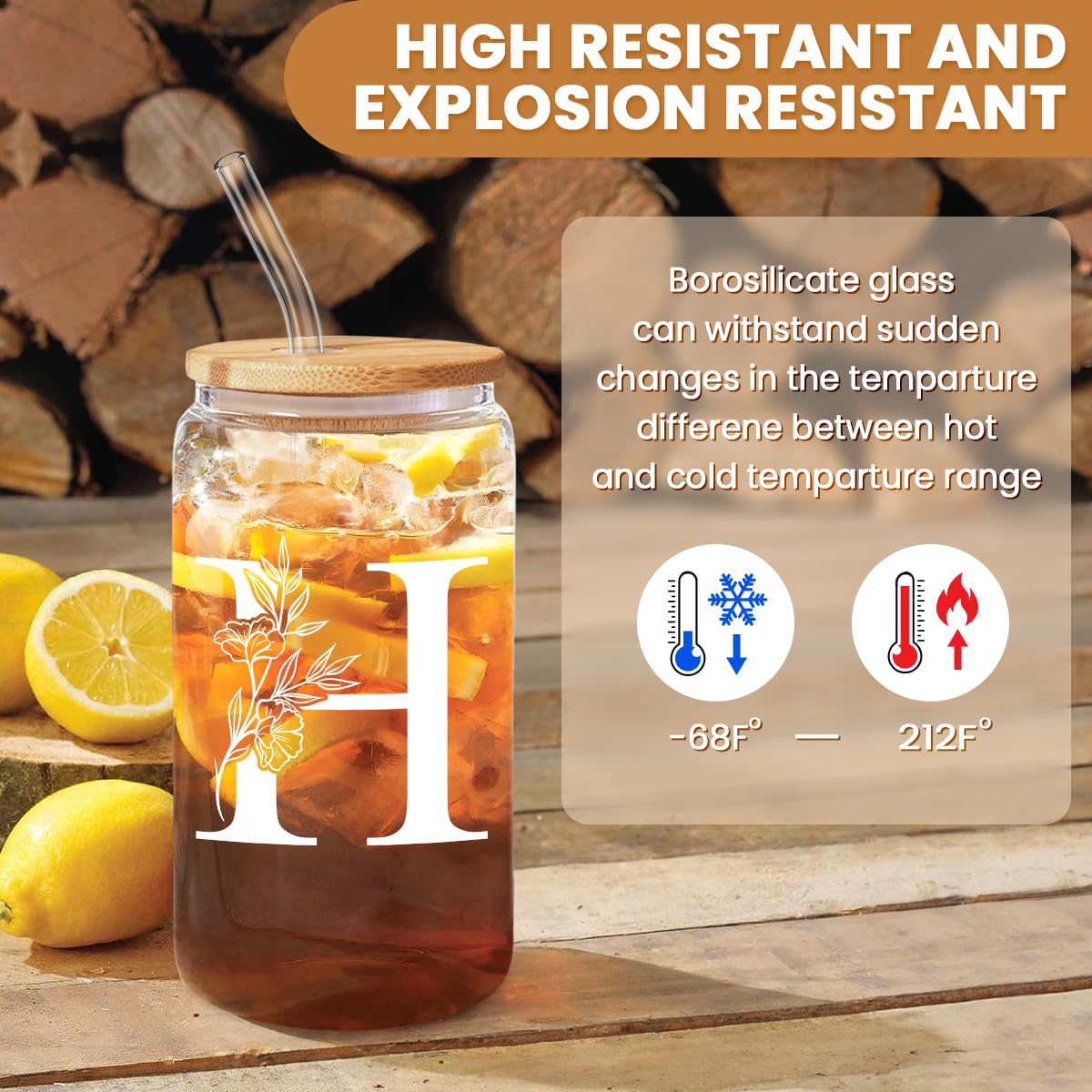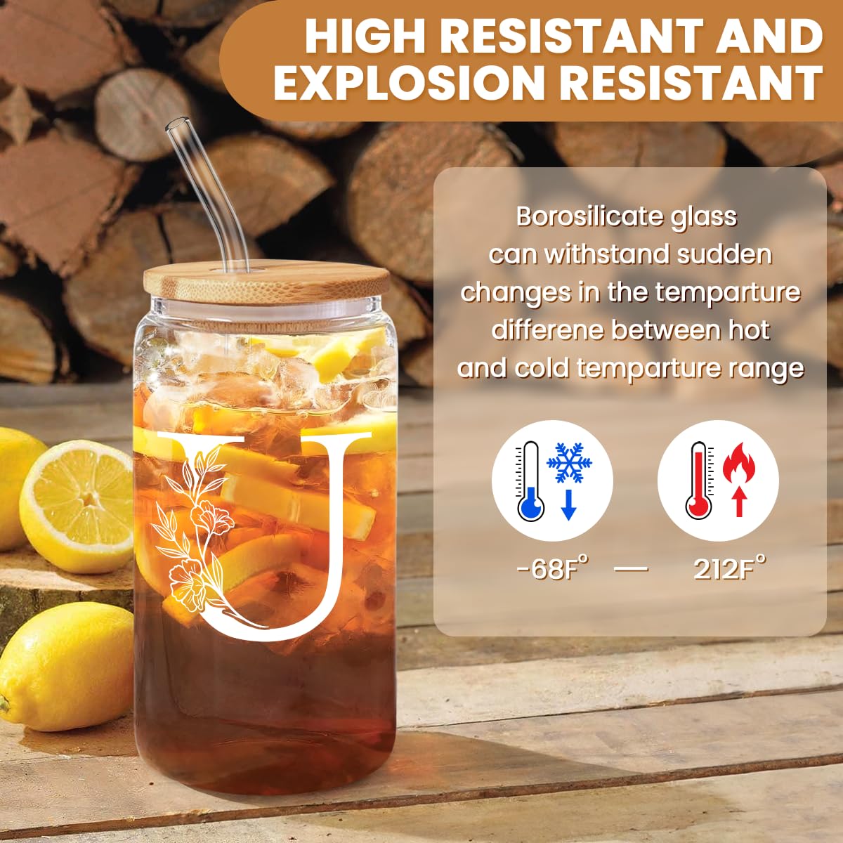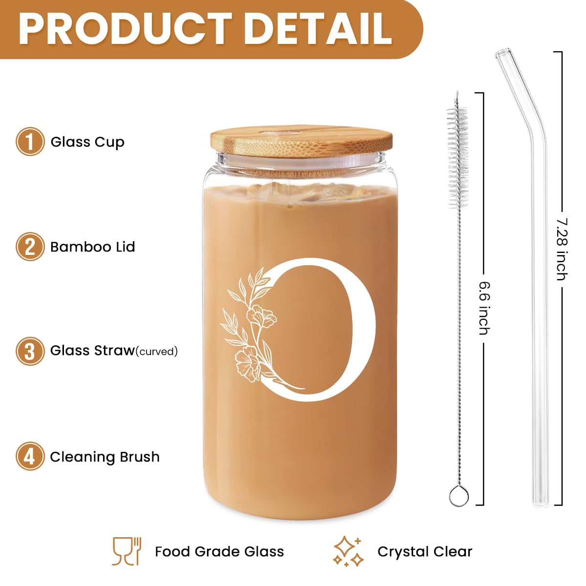 SANDJEST Monogrammed Gifts for Women - Monogram D Initial Glass Cup 16 Oz Can Coffee Cups with Lid and Straw - Monogram Initials Gifts for Womens on Birthday
