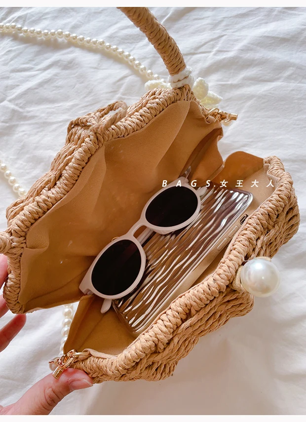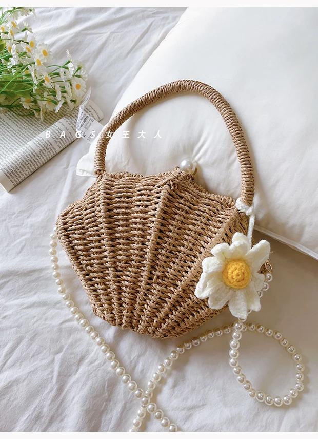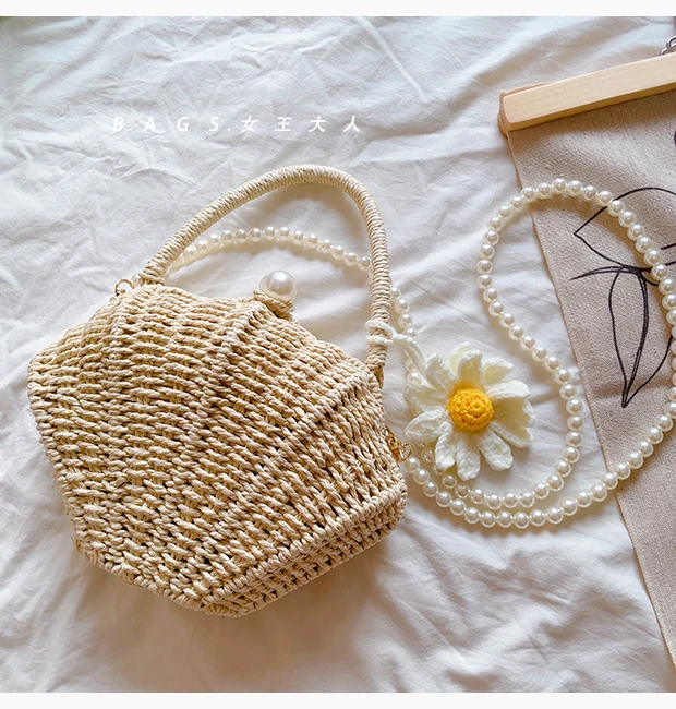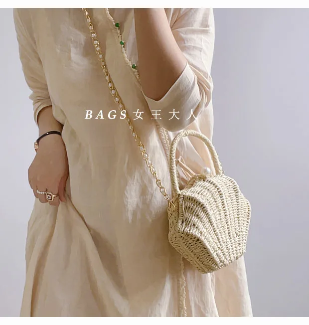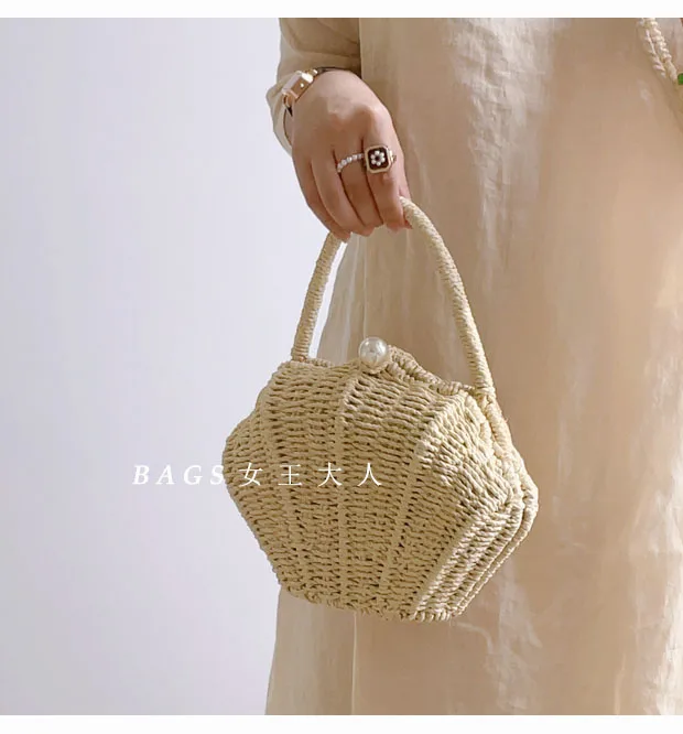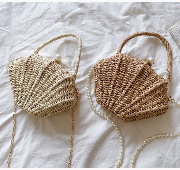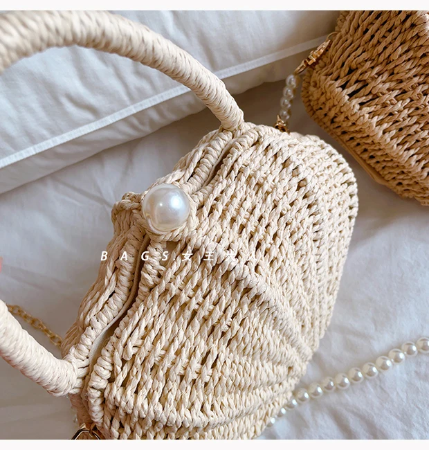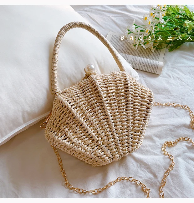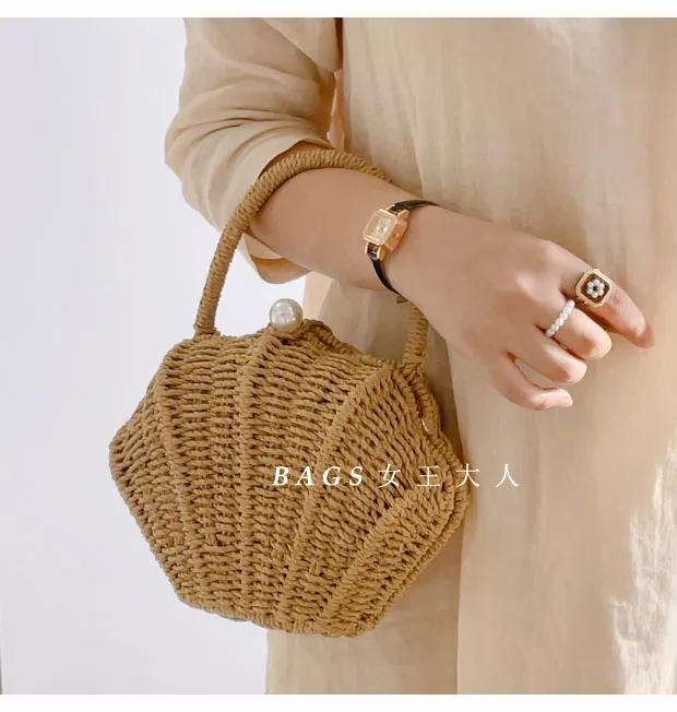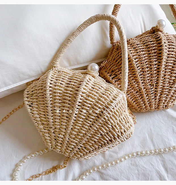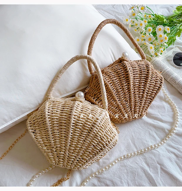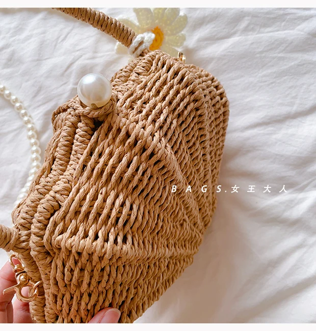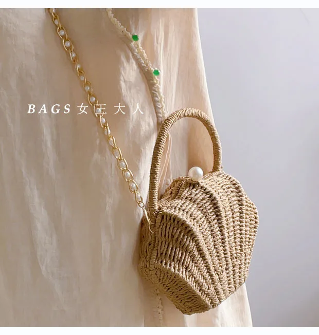 Shell Rattan Straw Woven Diagonal Cross Small Bag, Cute Fairy Change, Mobile Phone, Fashionable Woven Beach Bag