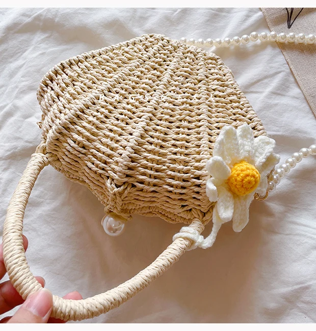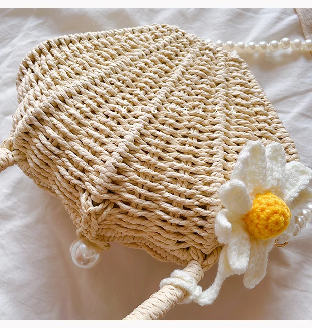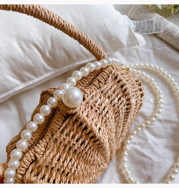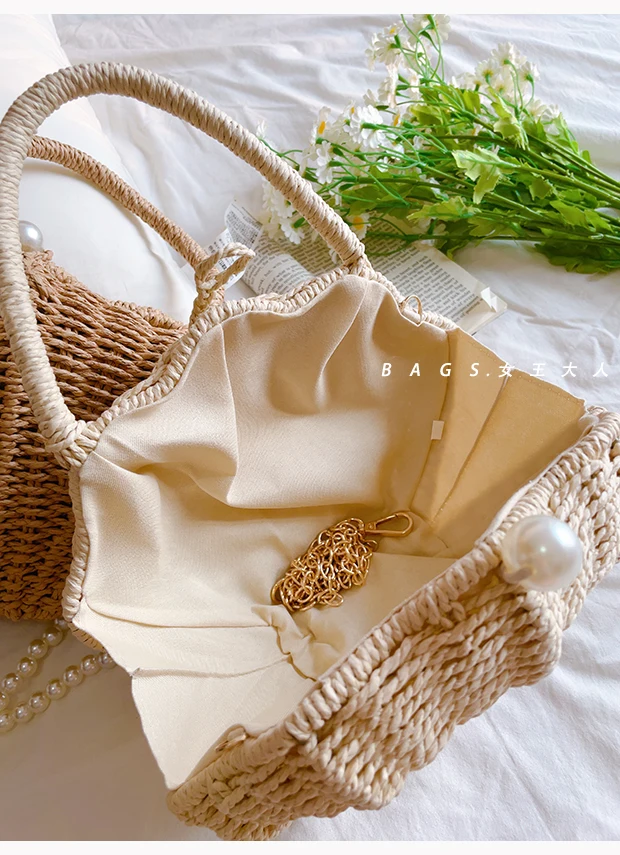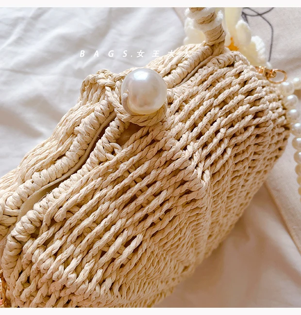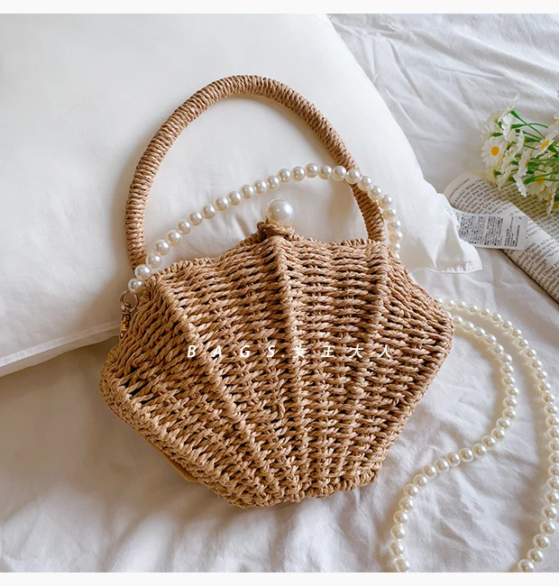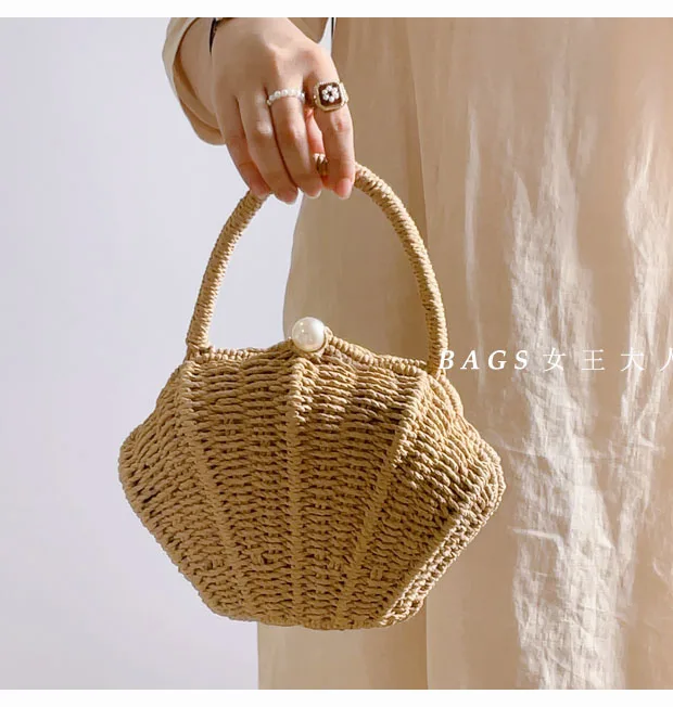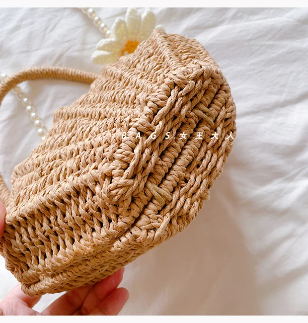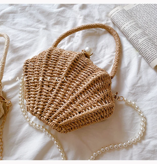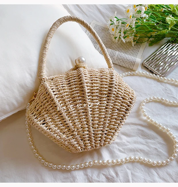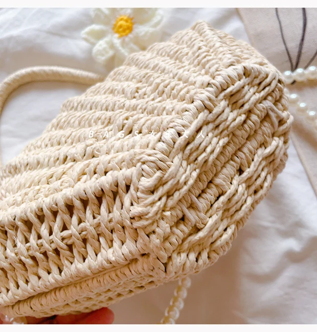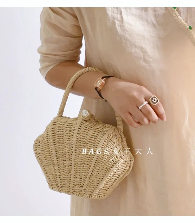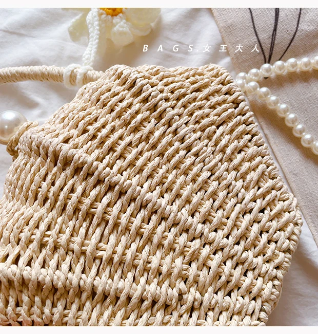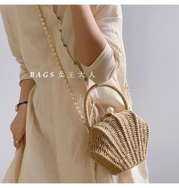 Shell Rattan Straw Woven Diagonal Cross Small Bag, Cute Fairy Change, Mobile Phone, Fashionable Woven Beach Bag