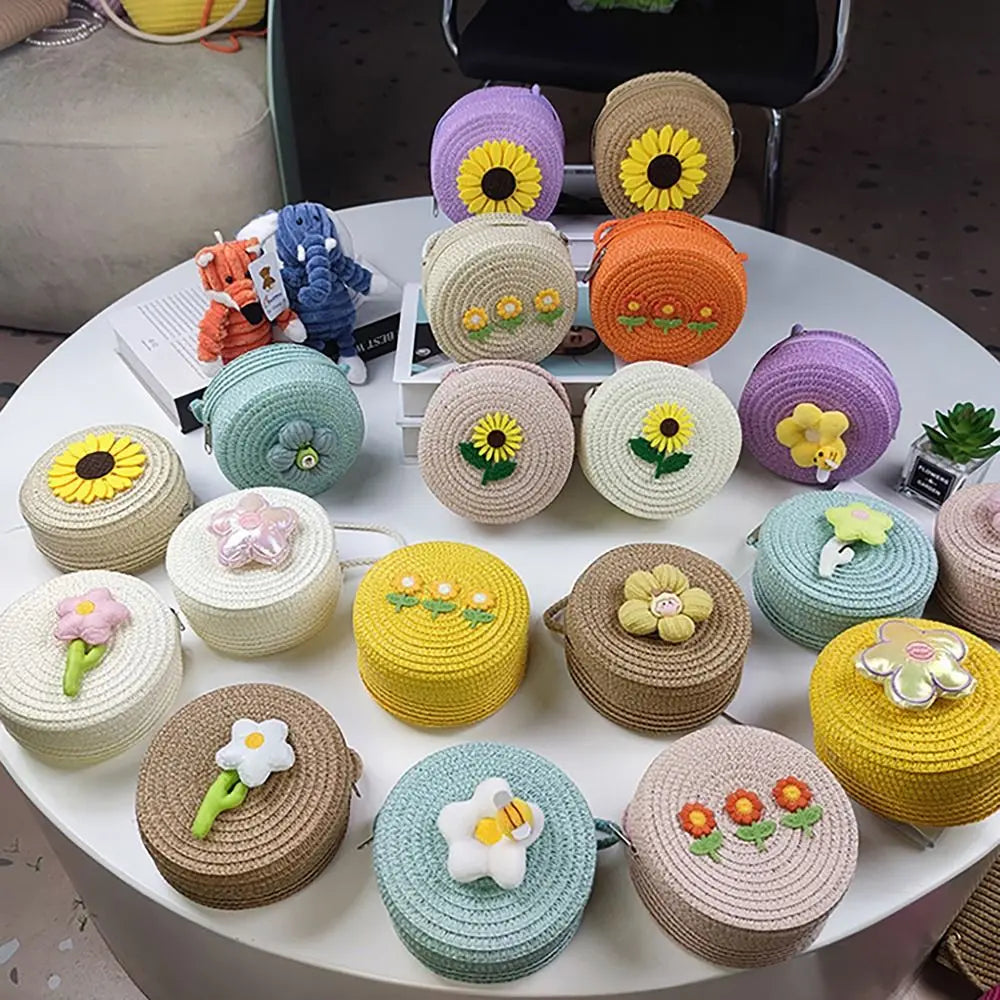 Simple Sunflower Straw Crossbody Bag Large Capacity Handmade Children Beach Shoulder Bag Round Coin Purse Women Girl