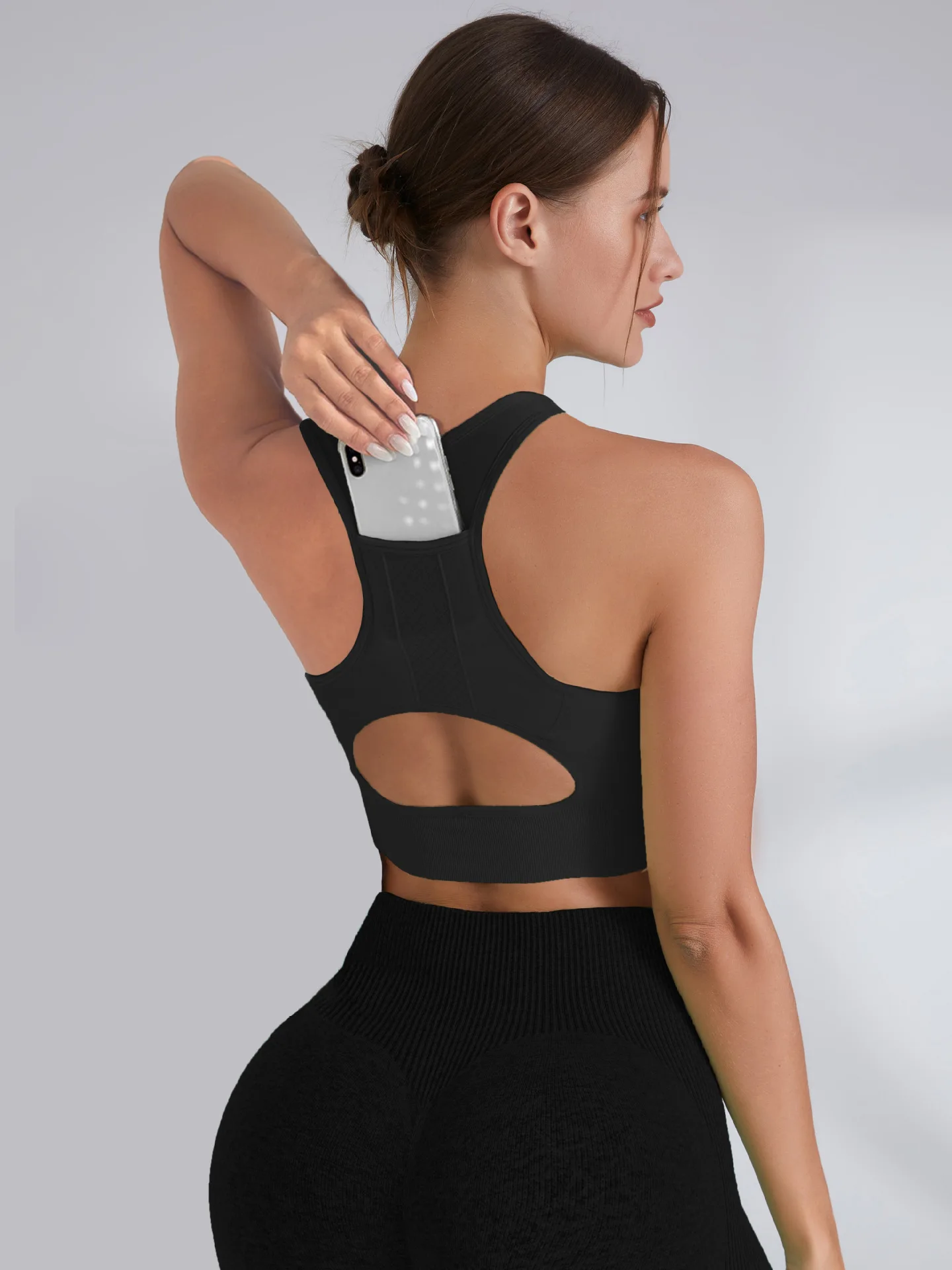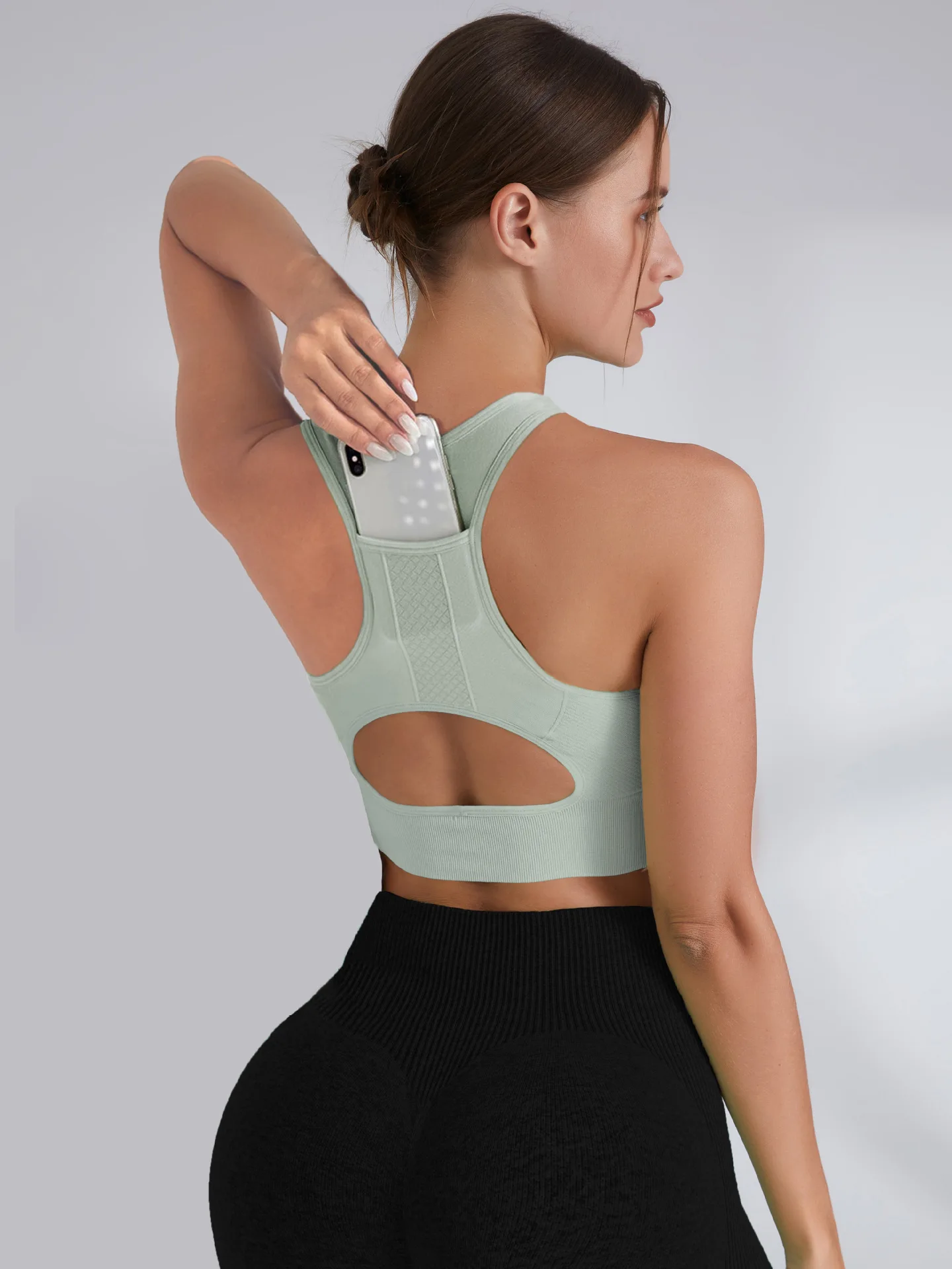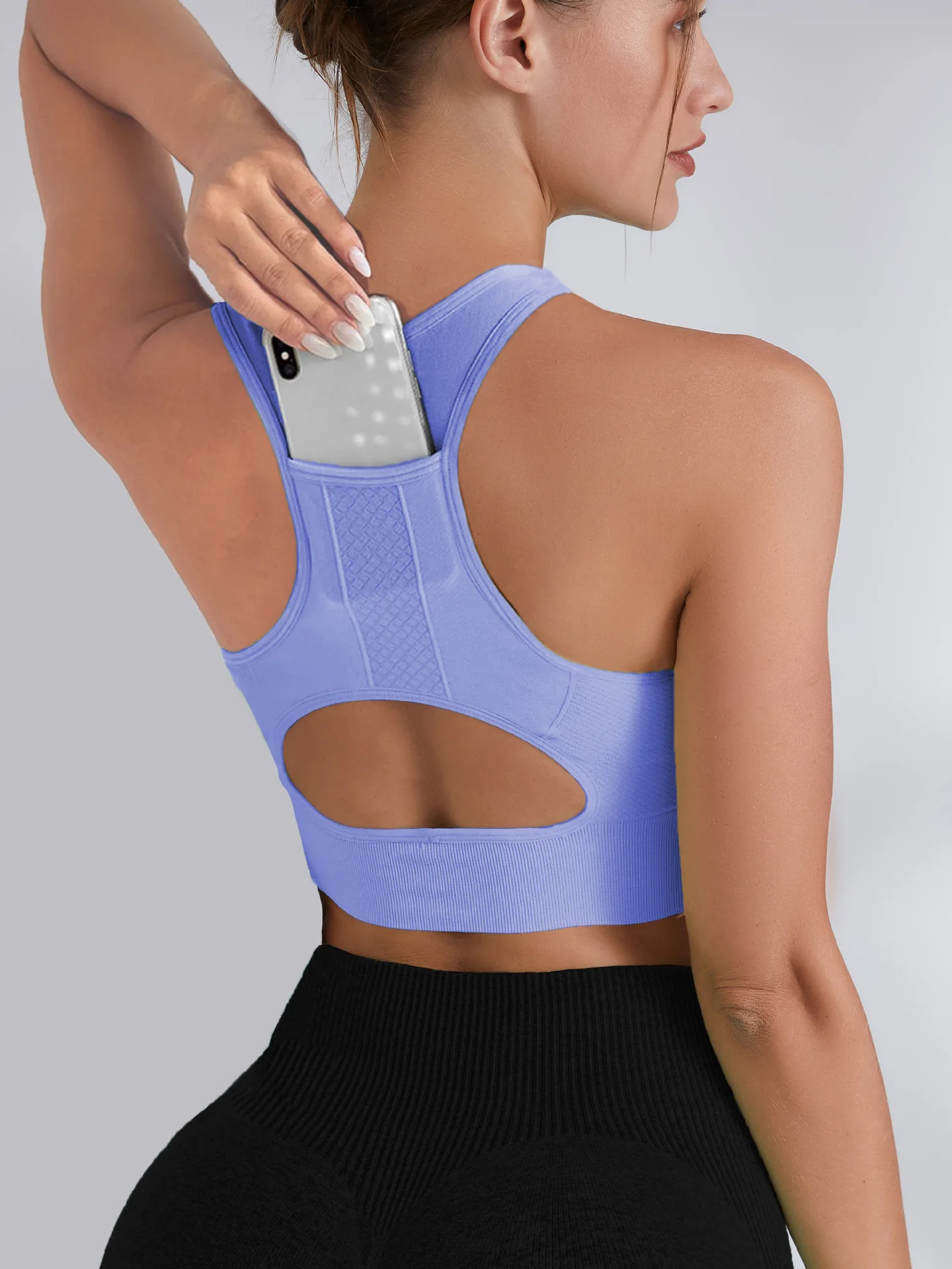 Tank Top Sports Bra Gym Clothes Woman Hollow Yoga Running Underwear Phone Pocket Fitness Push Up Top Deportivos Mujer Gym Bras
