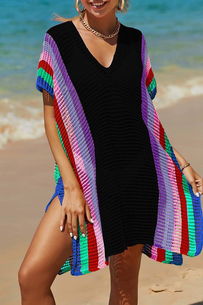 Rainbow Colorblock Splicing Beach Cover Up JYYS143