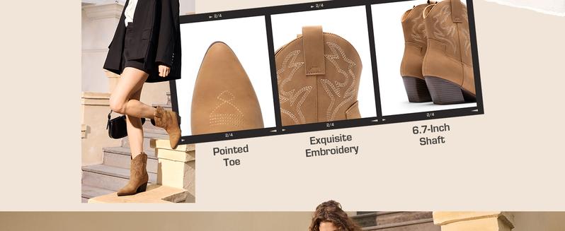 Women'S Cowboy Cowgirl Boots Embroidered Stitched Short Western Boots Low Chunky Heel Pointed Toe Ankle Booties