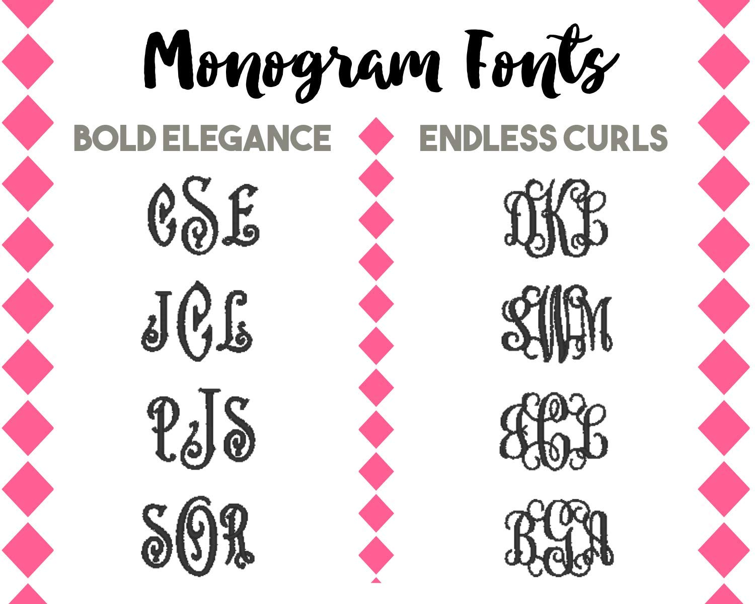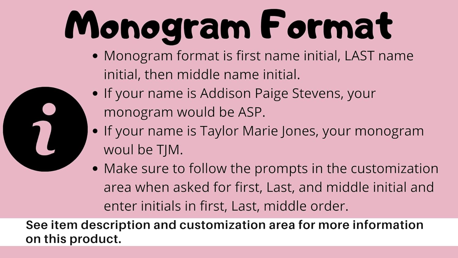- Enter monogram in first name initial, last name initial, middle name initial order