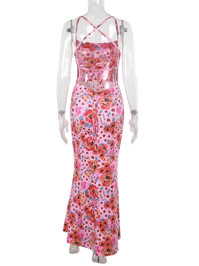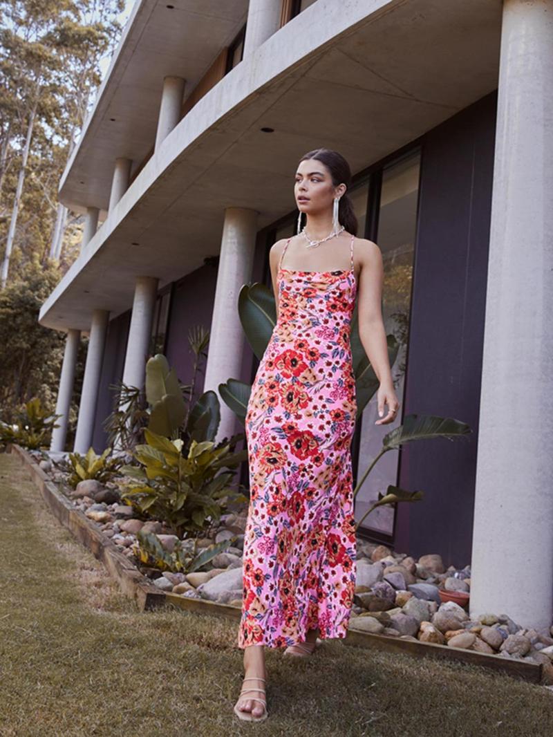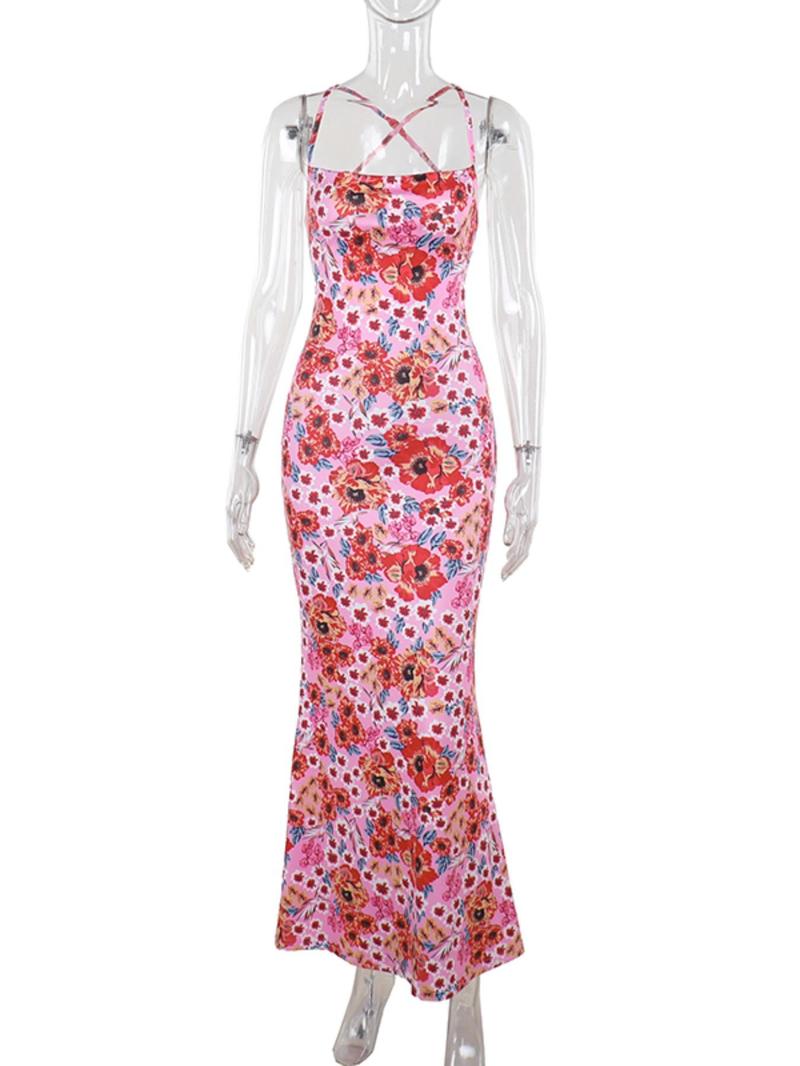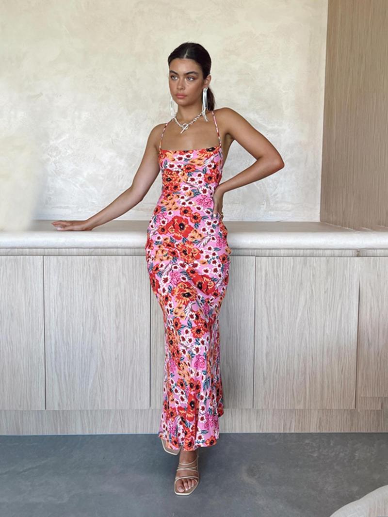 Women's Ditsy Floral Print Cami Dress - Bohemian Sleeveless Spaghetti Strap Maxi Dress for Beach Holidays and Summer Vacations