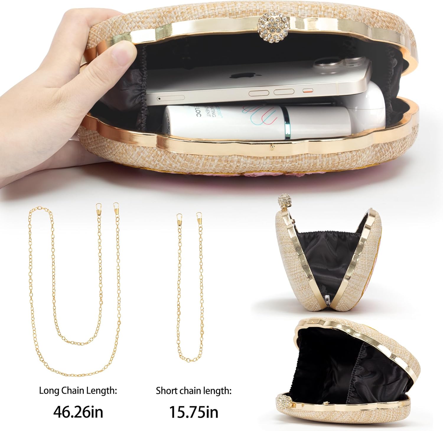 - Unique seashell shape , Kiss Lock Closure, Clutch Purses.