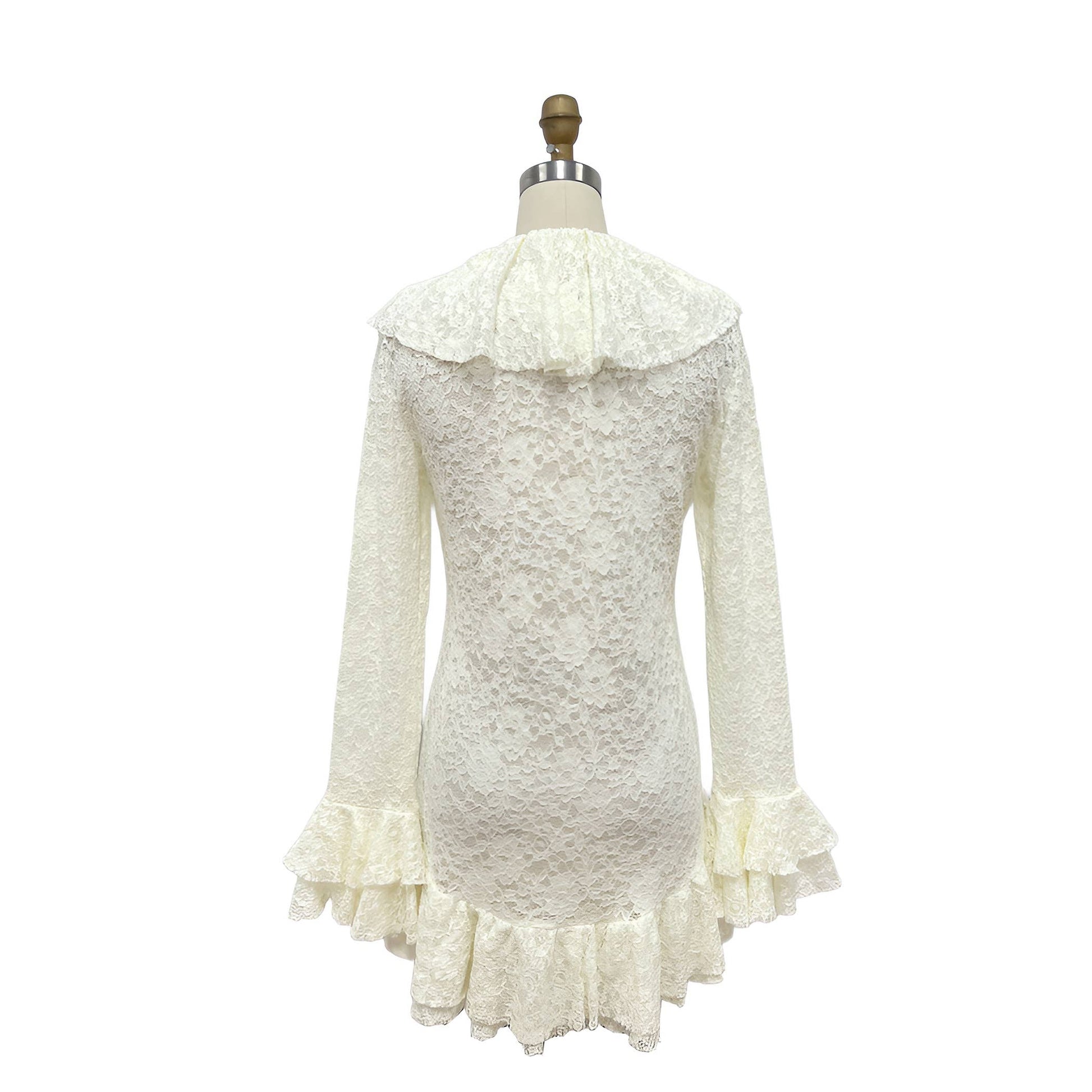 XHHH Inc - Ruffle Lace Flare Sleeve Blouse: BEIGE / L