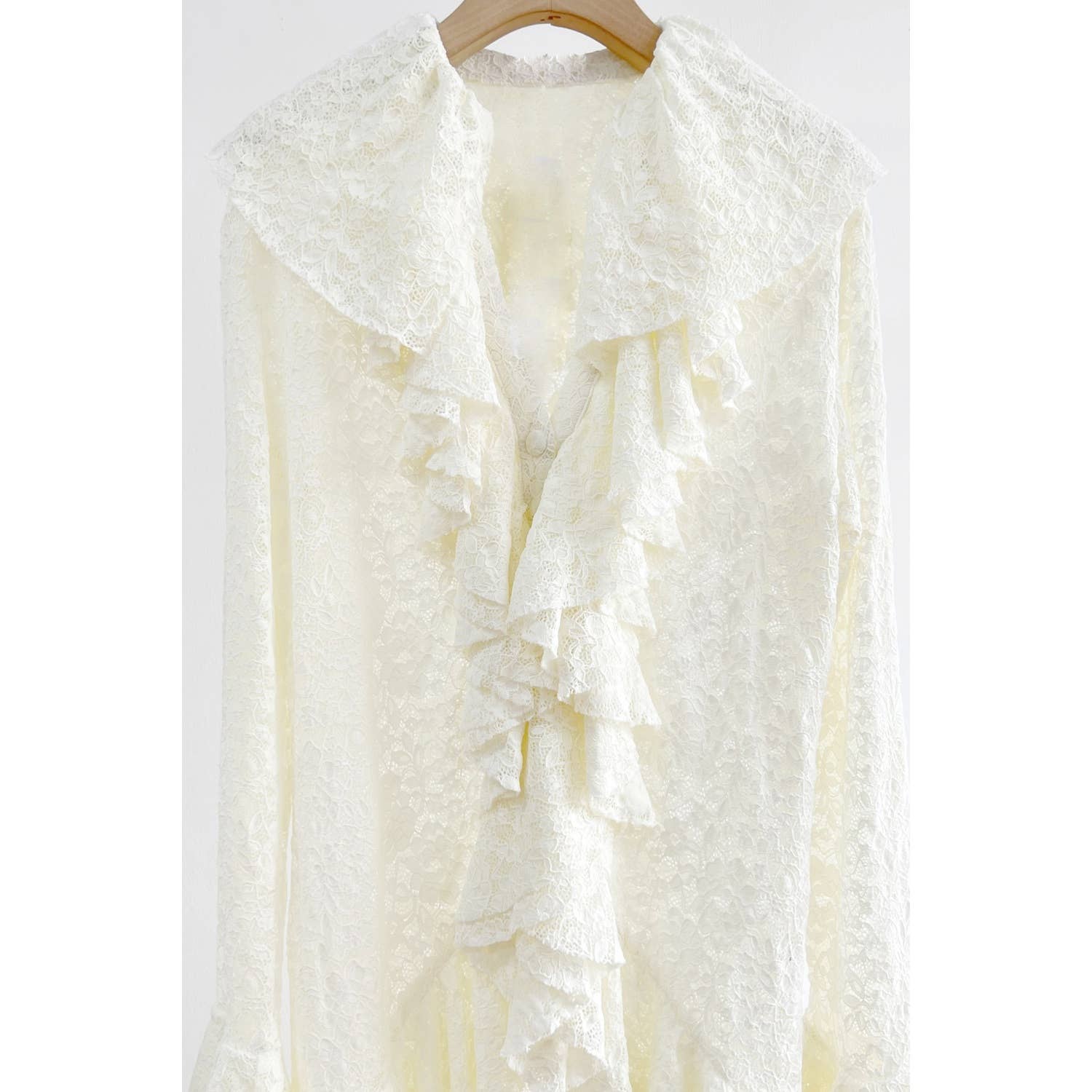 XHHH Inc - Ruffle Lace Flare Sleeve Blouse: BEIGE / M