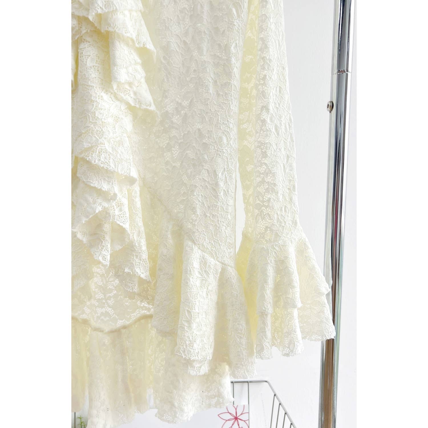 XHHH Inc - Ruffle Lace Flare Sleeve Blouse: BEIGE / S